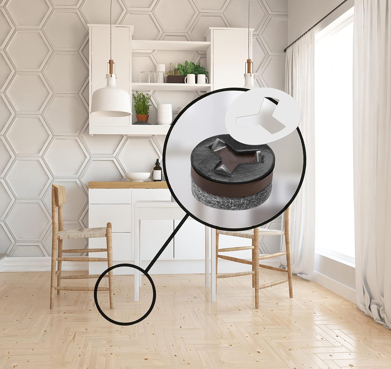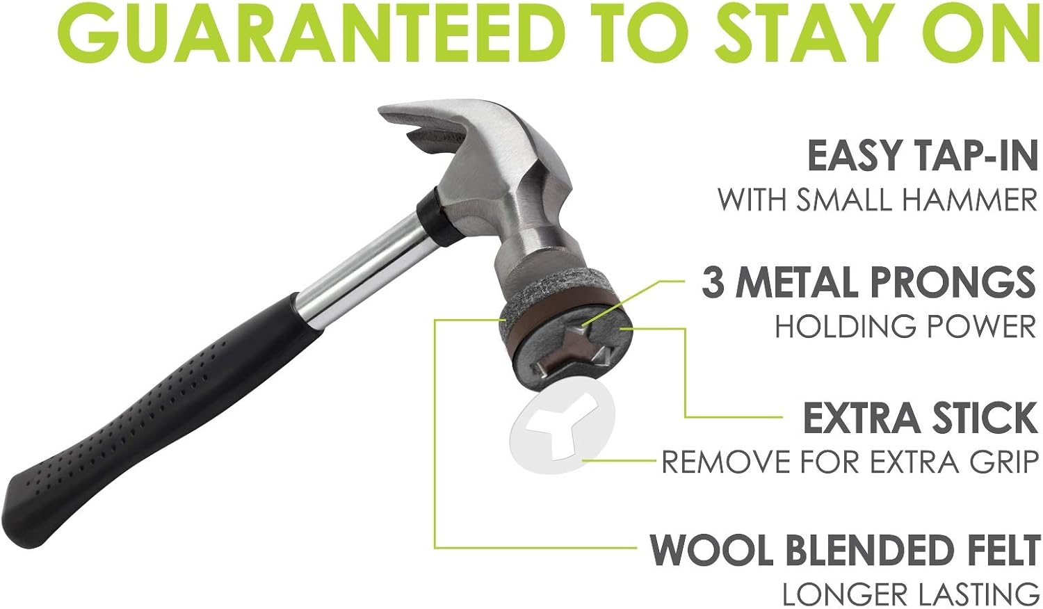 - Quick & easy tap on installation – Includes 16 x 3/4 inch round chair feet pads that install in seconds with the tap of a hammer, simply clean the bottom of chair legs, peel off adhesive backing from glides, position on furniture and then tap in felt furniture pads. Not for use on metal furniture legs or furniture legs made of hard material that can't be hammered into.