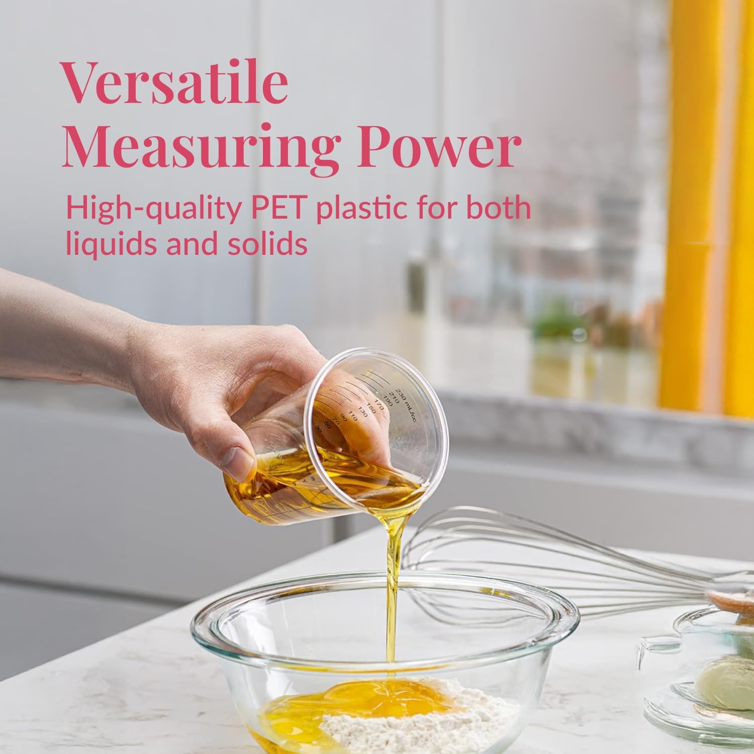 Prestee 50 Disposable Measuring Cups 8 oz - Plastic Paint Measuring Cups and Disposable Mixing Cups for Epoxy Resin - Versatile, Clear Measurement for Wet and Dry Ingredients for Baking and Crafting