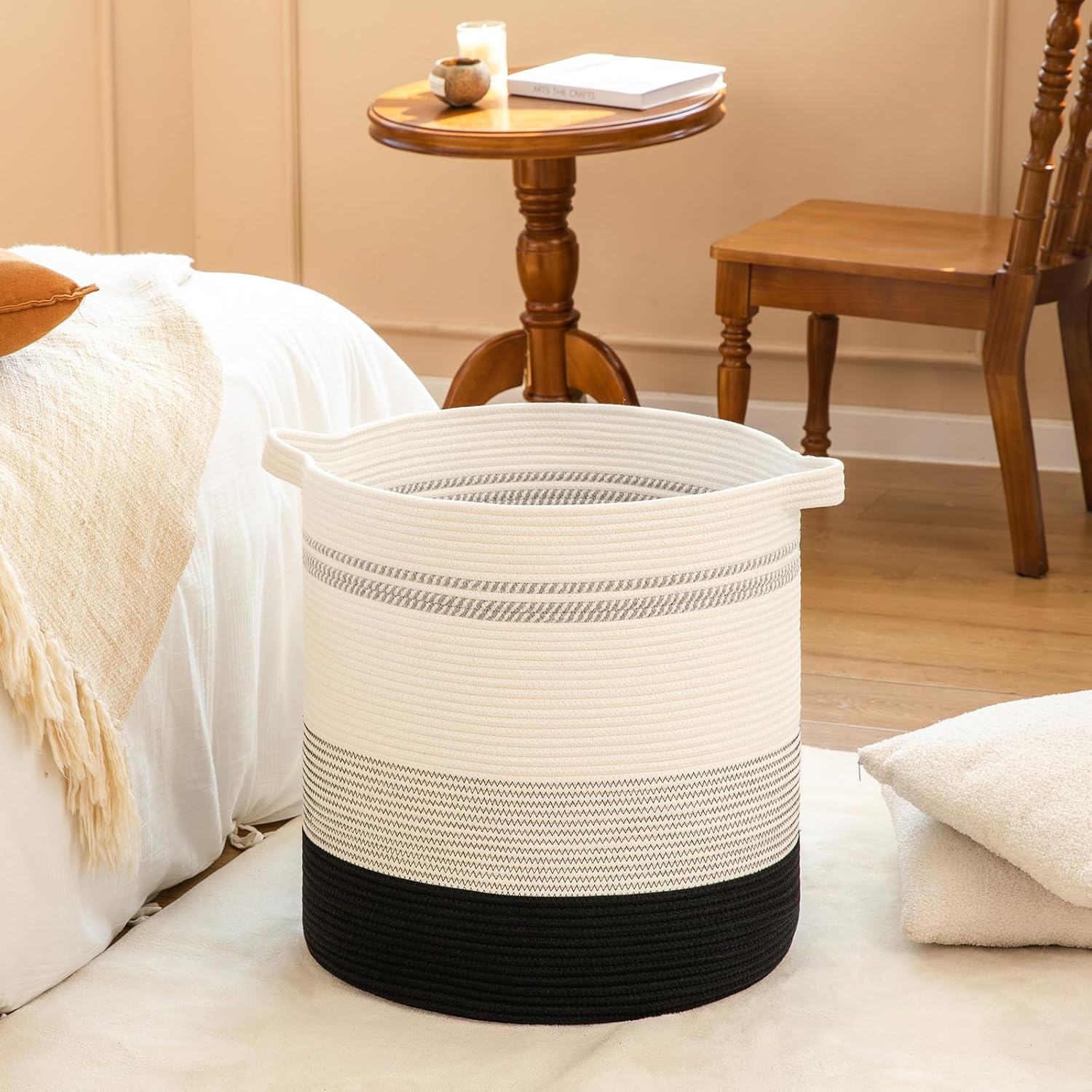 - Oversized Size Decorative Laundry Baskets: The overall size of the laundry Hamper is 20 x 18 inches(all dimensions are measured manually with deviation)This large basket can easily accommodate the family's one-week change of clothes and keep room clean&tidy.This elegant storage basket bring great convenience in life to store bulky items like blankets,comforters,duvets,throw pillows,cushions,stuffed animals,winter clothing etc
