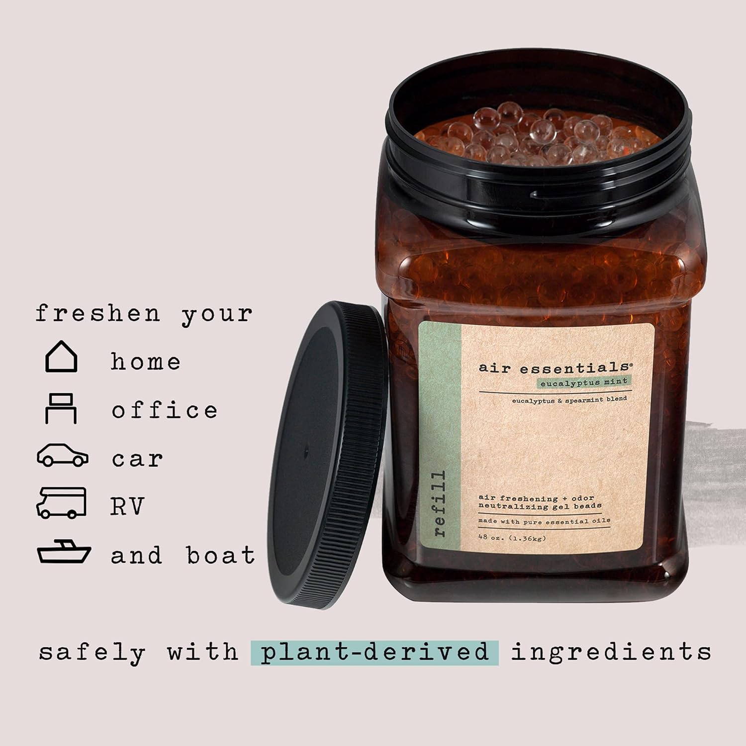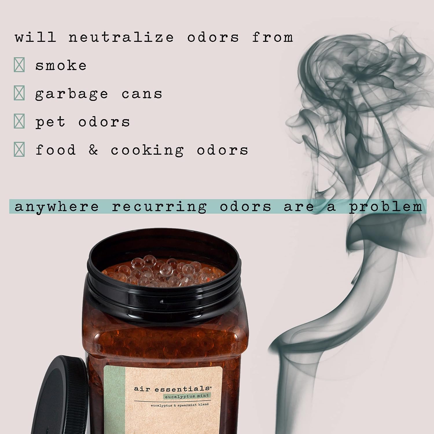 - NEUTRALIZE RECURRING ODORS - Freshen your home, office, car, RV, and boat safely with plant derived ingredients and pure essential oils. The Gel Beads will neutralize odors from smoke, garbage cans, pet areas, food, cooking and anywhere recurring odors are a problem. Pour the Gel Beads into an existing Air Essentials 12 ounce jar or your favorite vase or bowl for added decoration.