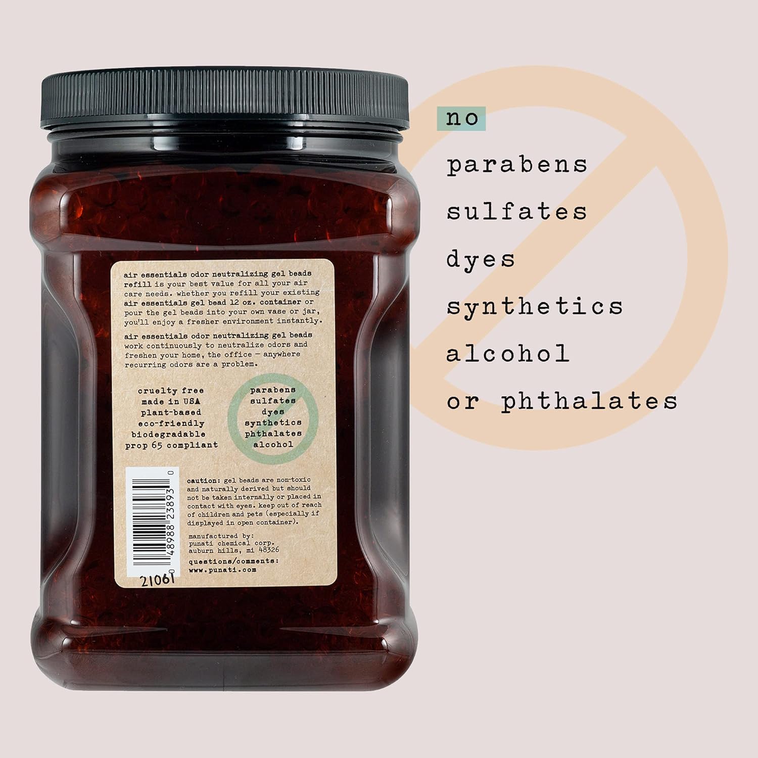 - MADE IN THE USA - Air Essentials Gel Beads do not contain parabens, sulfates, dyes, synthetics, alcohol or phthalates. Every jar is proudly Made in the USA and is formulated with plant derived ingredients. Eucalyptus Mint is a blend of eucalyptus and spearmint essential oils.