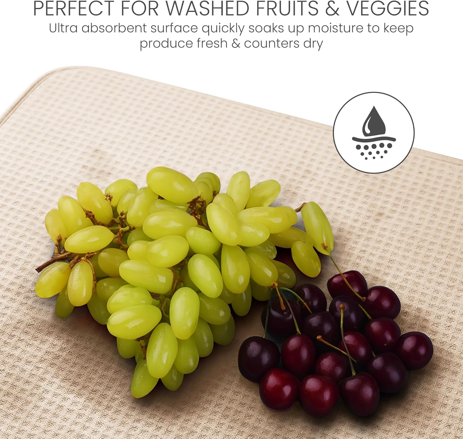 - THICKEST , STYLISH MAT | INNOVATIVE HONEYCOMB WEAVE: Keep your counter spotless even while washing a sink full of dishes . Our superbly stylish drying mat is among the thickest on the market today , and its innovative honeycomb microfiber structure enhances absorption and quickens drying time .