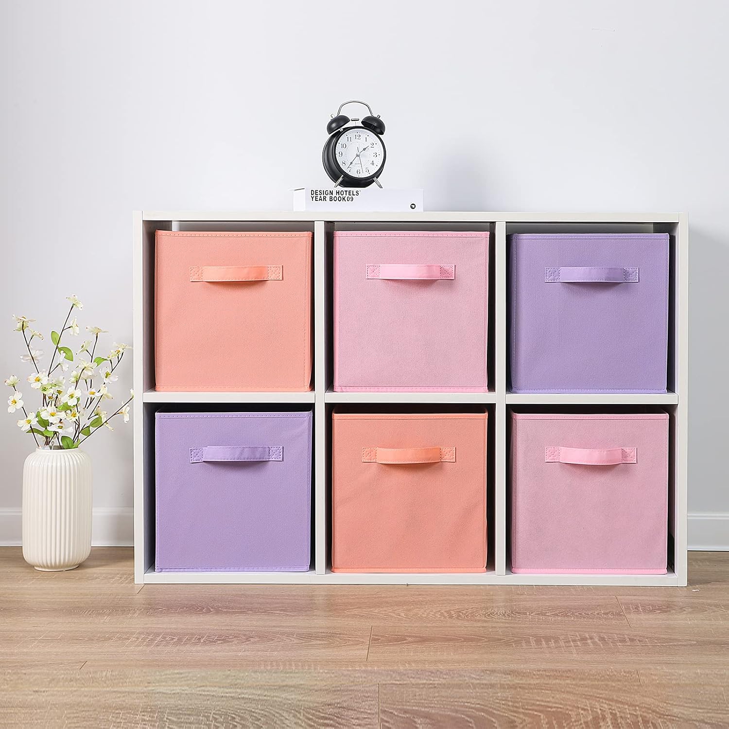 Stero Fabric Storage Bins 6 Pack Fun Colored Durable Storage Cubes with Handles Foldable Cube Baskets for Home, Kids Room, Closet and Toys Organization Purple, Pink, peachpuff