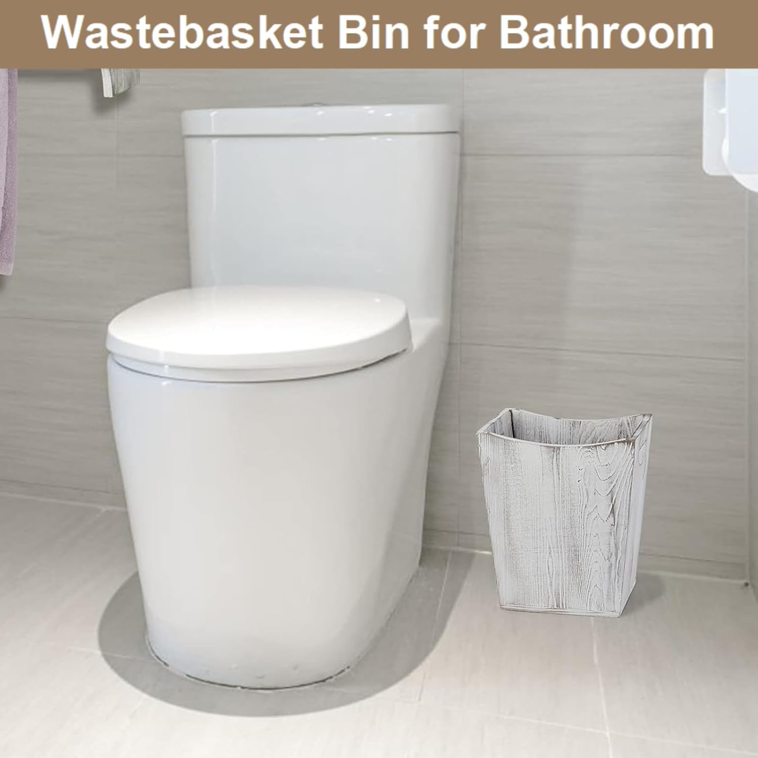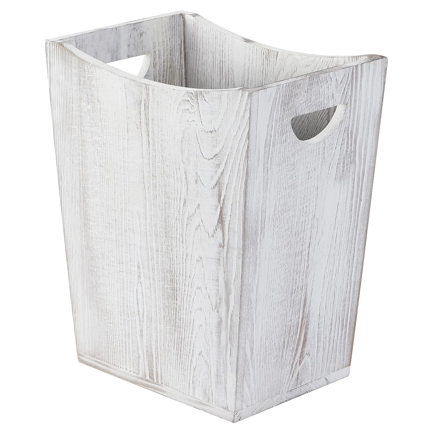 SEHERTIWY Wood Trash Can, Farmhouse Wastebasket Bin for Bathroom, Office, Bedroom, Living Room, Small Square Rustic Garbage Container (Wood-White)