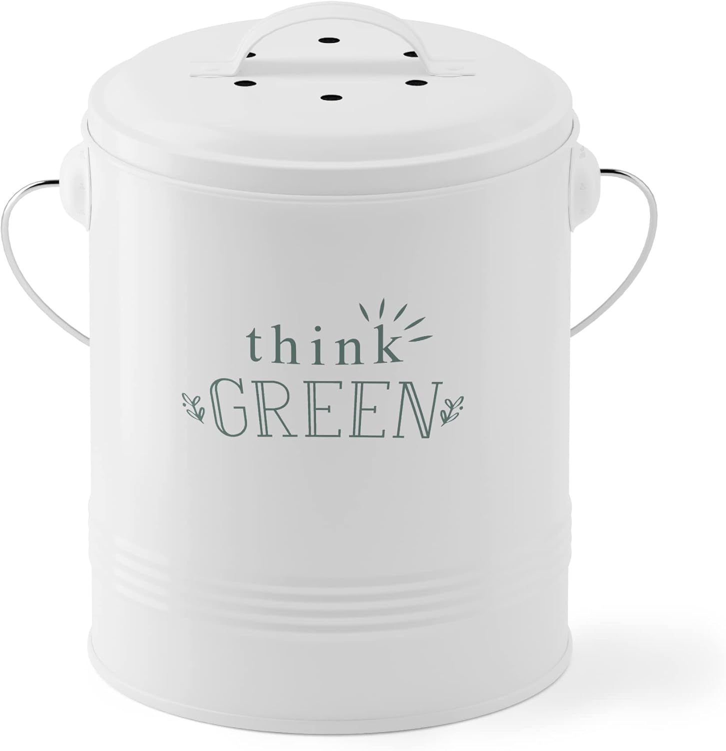 - Dimensions - Our small compost bins for kitchen measure 7"D x 9.5"H w/ lid. Height w/out lid: 7.75"H. Intended for indoor use. Material: Galvanized steel. Rust proof. Recommended compost bag size: 5 liters/1.2 gallons. Color: White.