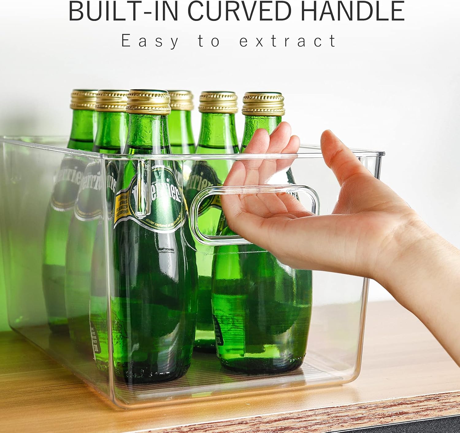 - 【IDEAL STORAGE CHOICE】These kitchen organization have been heightened so that things don't collapse when placed inside. This 8 pack fridge organizer use thick materials to increase toughness. Those pantry storage bins are fall-resistant, sturdy, and not deformed. Can be used for a longer time.