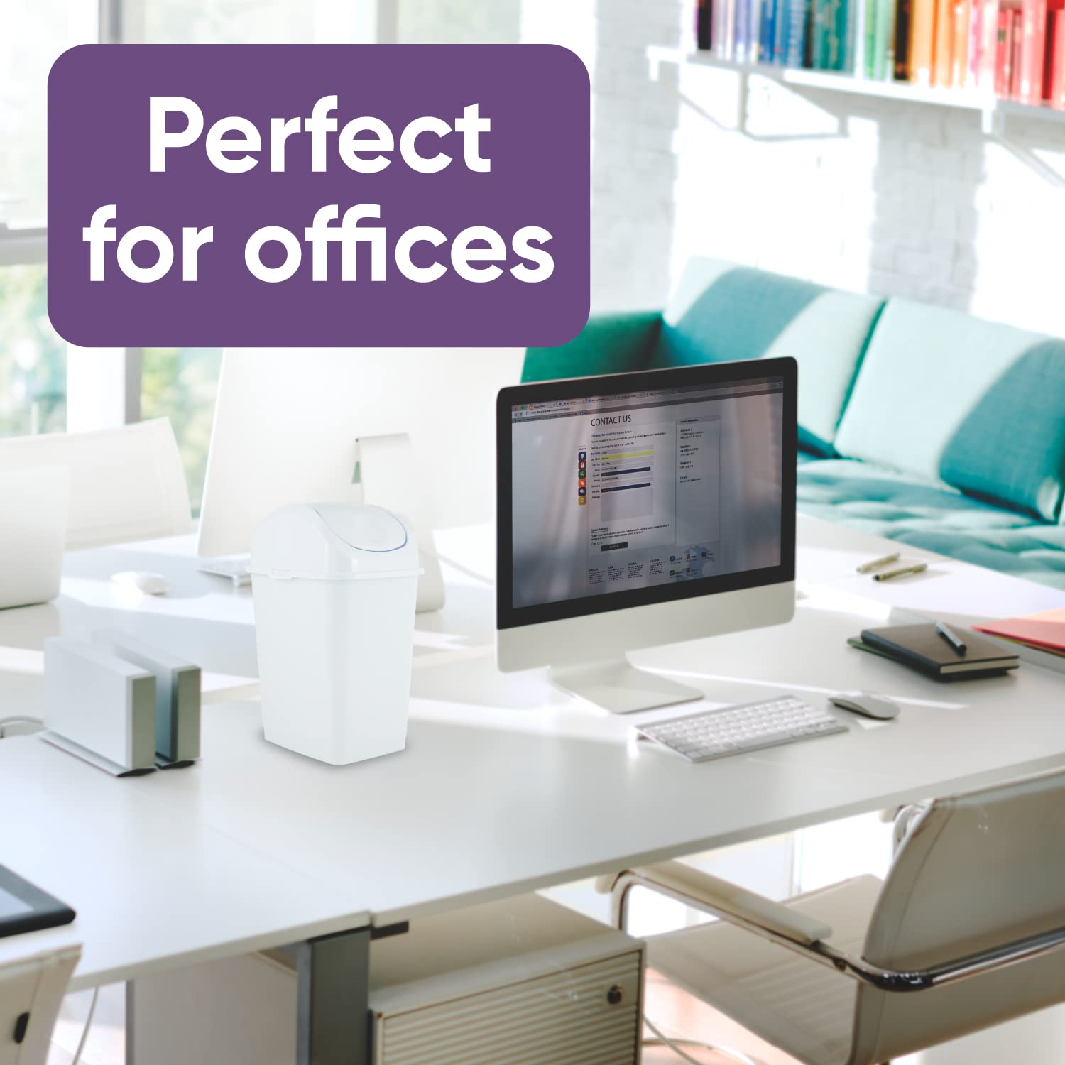 Superio Mini Desktop Trash Can with Swing Top Lid Portable Plastic Garbage Can for Countertop, Desktop, Make up Vanity, Bathroom, Car, Under Sink, Dorm, Compact Waste Bin 5 L 1.25 Gal (2, White)