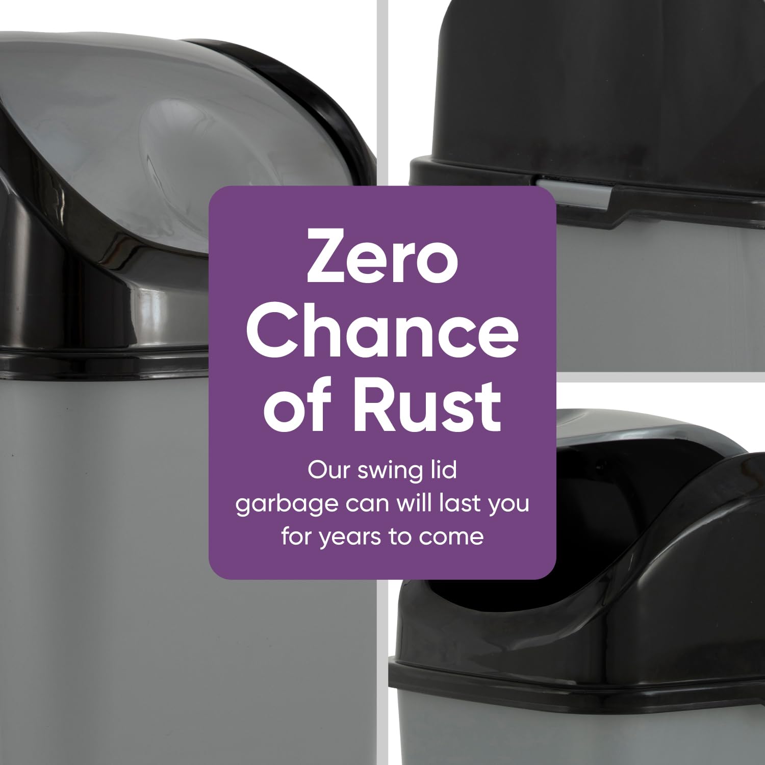 - SWING TOP LID – Keep your trash contained and out of sight with this easy swing lid garbage bin. It closes right away preventing any trash from getting out and makes it easier to clean while not having to use a regular opening lid. It’s a useful addition to your office, bathroom, or kitchen.