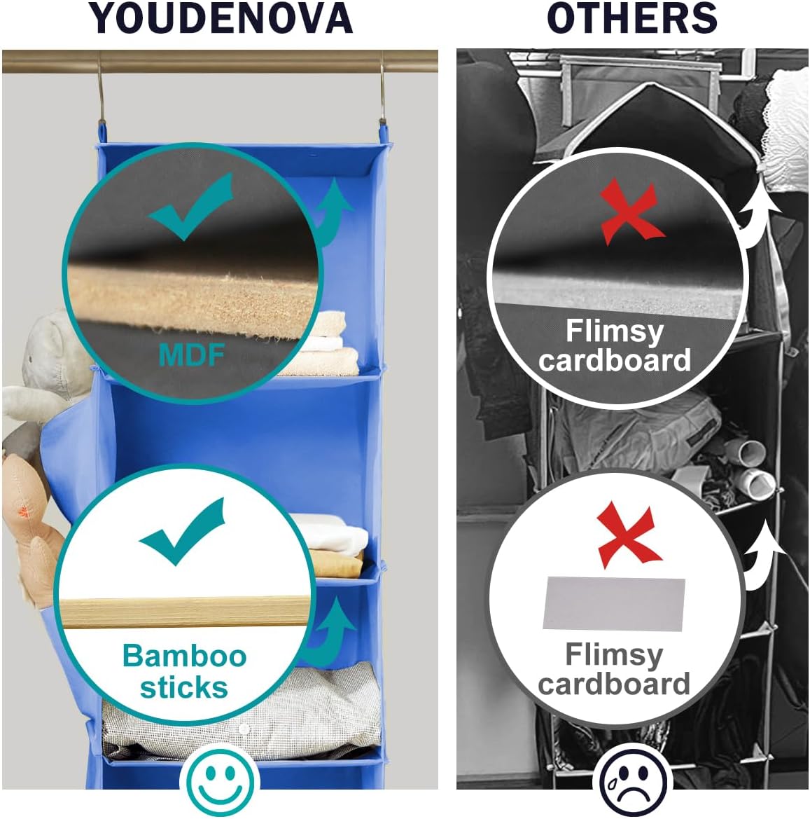 YOUDENOVA Hanging Closet Organizer, 6-Shelf Closet Hanging Storage Shelves, Blue