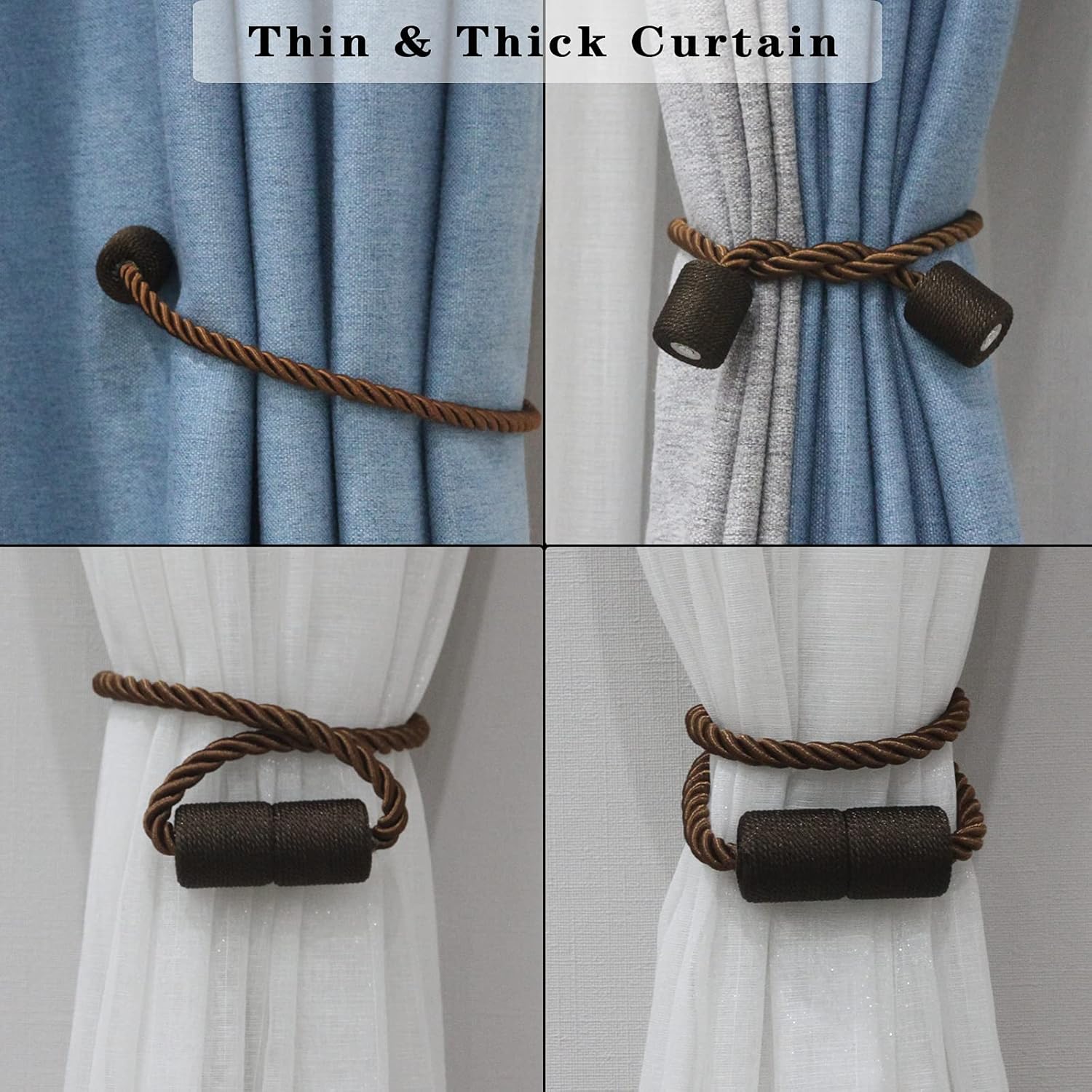 2 Pack Strong Magnetic Curtain Tiebacks Outdoor Elegant Decorative Tie Backs Modern Rope Tiebacks for Drapes Window Curtain Holdbacks for Draperies- Coffee
