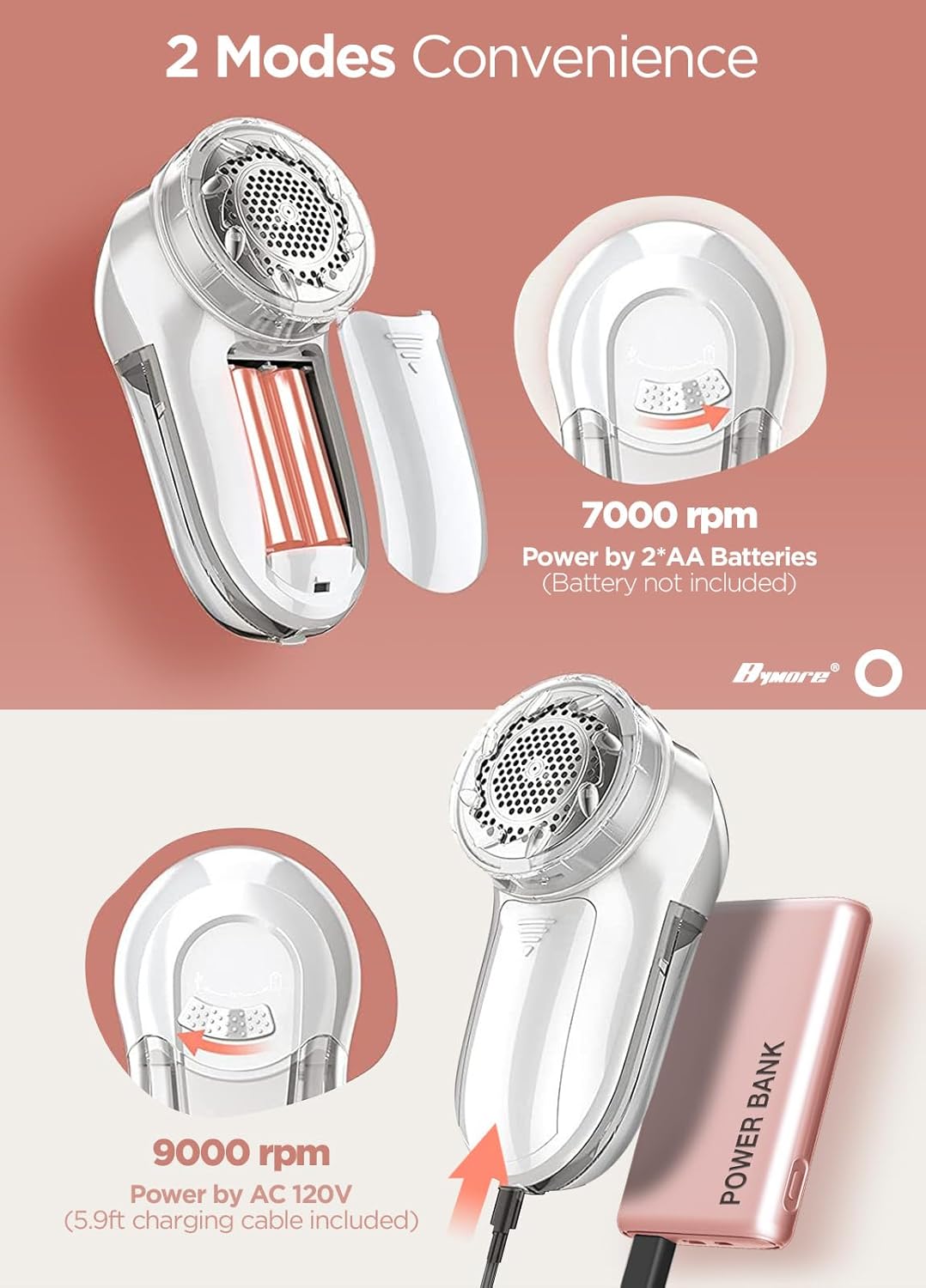 Bymore Fabric Shaver, Lint Remover, Lint Shaver Defuzzer Sweater Shaver for Clothes and Furniture with AC Adapter Pill Fuzz Remover-White