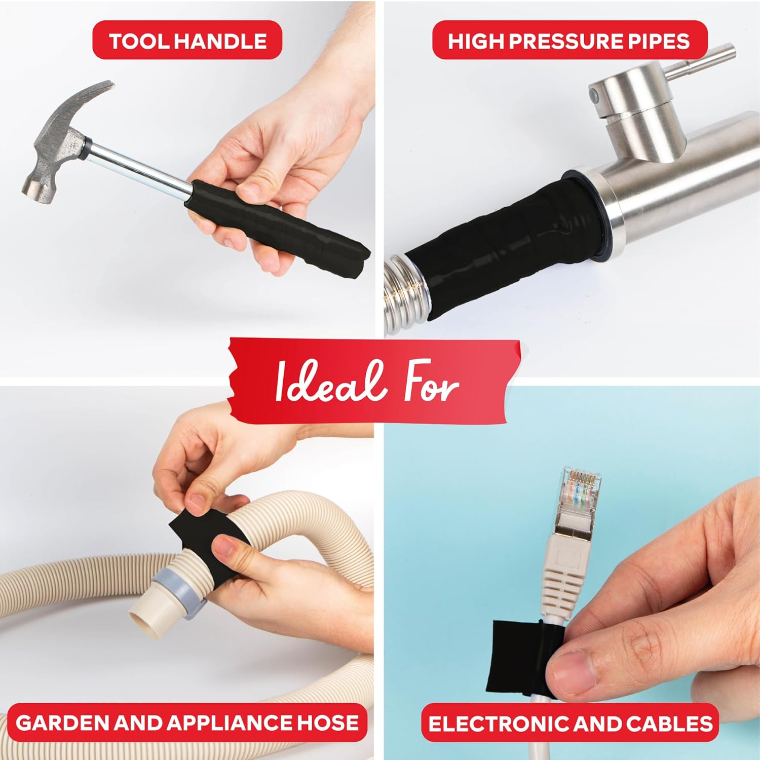 - IDEAL FOR QUICK EMERGENCY REPAIRS. Our Self-Fusing Silicone Tape PRO is made from 100% Silicone that wraps around itself without the need of any adhesive, providing instant airtight and waterproof sealing to leaky hoses, pipes, electrical wiring, outdoor coax, wiring harnesses, and other fittings and connections. This stretch and seal tape is a must-have for plumbing, leak repair, and car or boat repair kits.