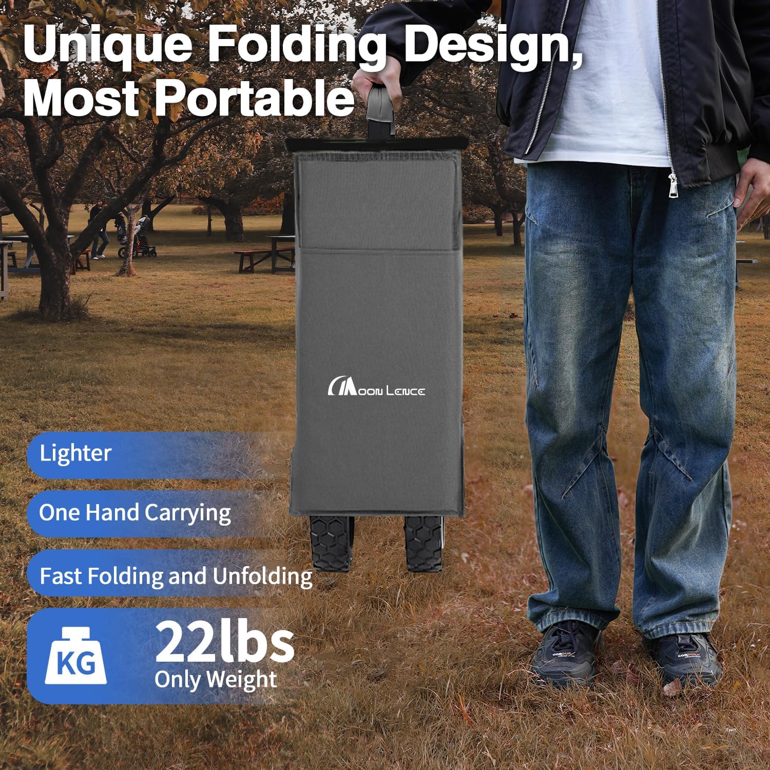 Moon Lence Collapsible Folding Wagon Cart Heavy Duty Folding Garden Portable Hand Cart with All-Terrain Beach Wheels, Adjustable Handle & Drink Holders (Grey)