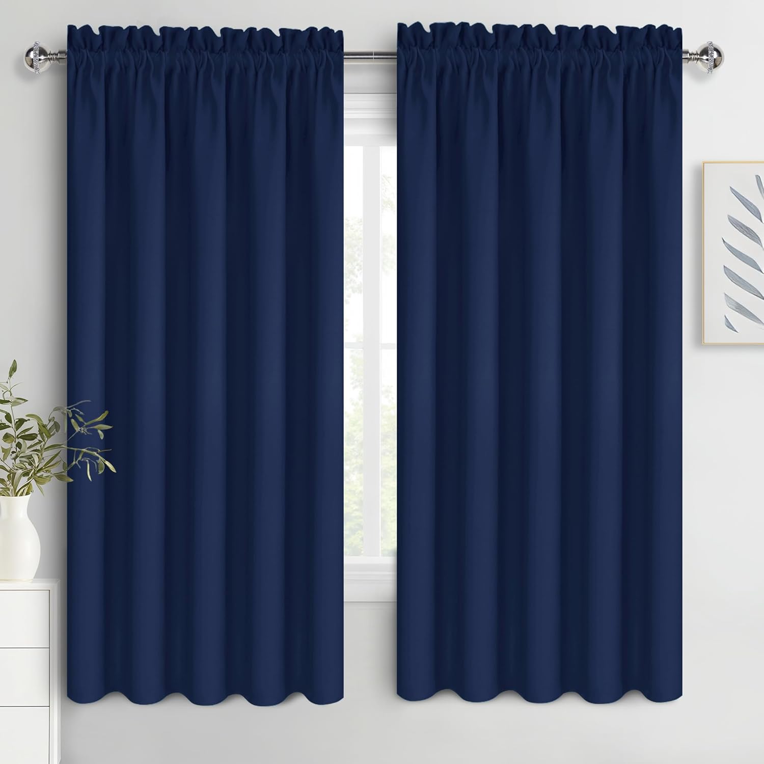 - [Polyester Material] Made of high-quality durable 100% polyester fabric, our blackout curtains are super smooth and soft. Two blackout curtain panels will be included in the bundle. Each panel is 60 inches wide by 63 inches length