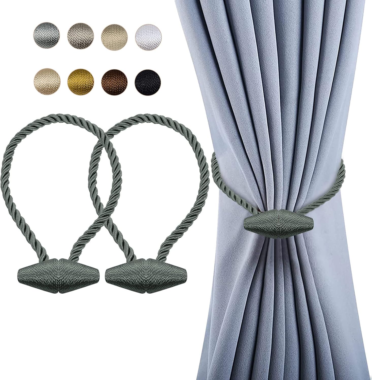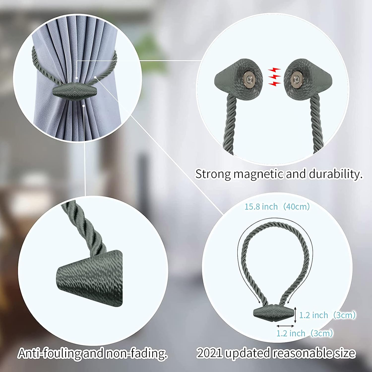 - [Upgrade Powerful Magnetic] Our magnetic curtain tiebacks magnets use high-end new imported nickel-plated magnets, with strong corrosion resistance and durability, more magnetic than ordinary magnetic curtain tiebacks, and do not rust and not lose color. The rope of curtain tie adopts upgrade thickened solid polyester yarn, which is not only durable, but also not easy to wear or pilling.