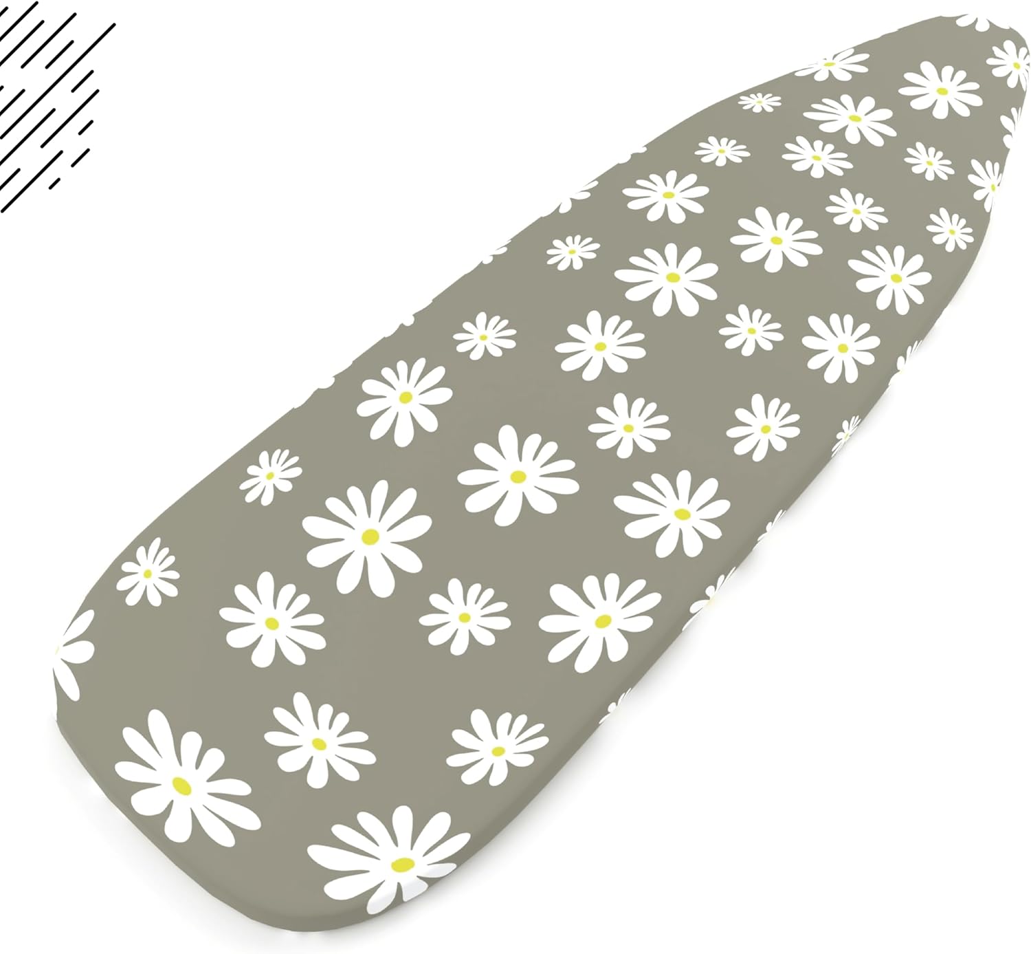 Encasa XO Ironing Board Cover and Pad 42"x14" - Thick 3mm Felt Padding, Drawstring Tightening & Lock, Easy Fit, Scorch & Stain Resistant, Fits Medium Ironing Board - Daisy Grey