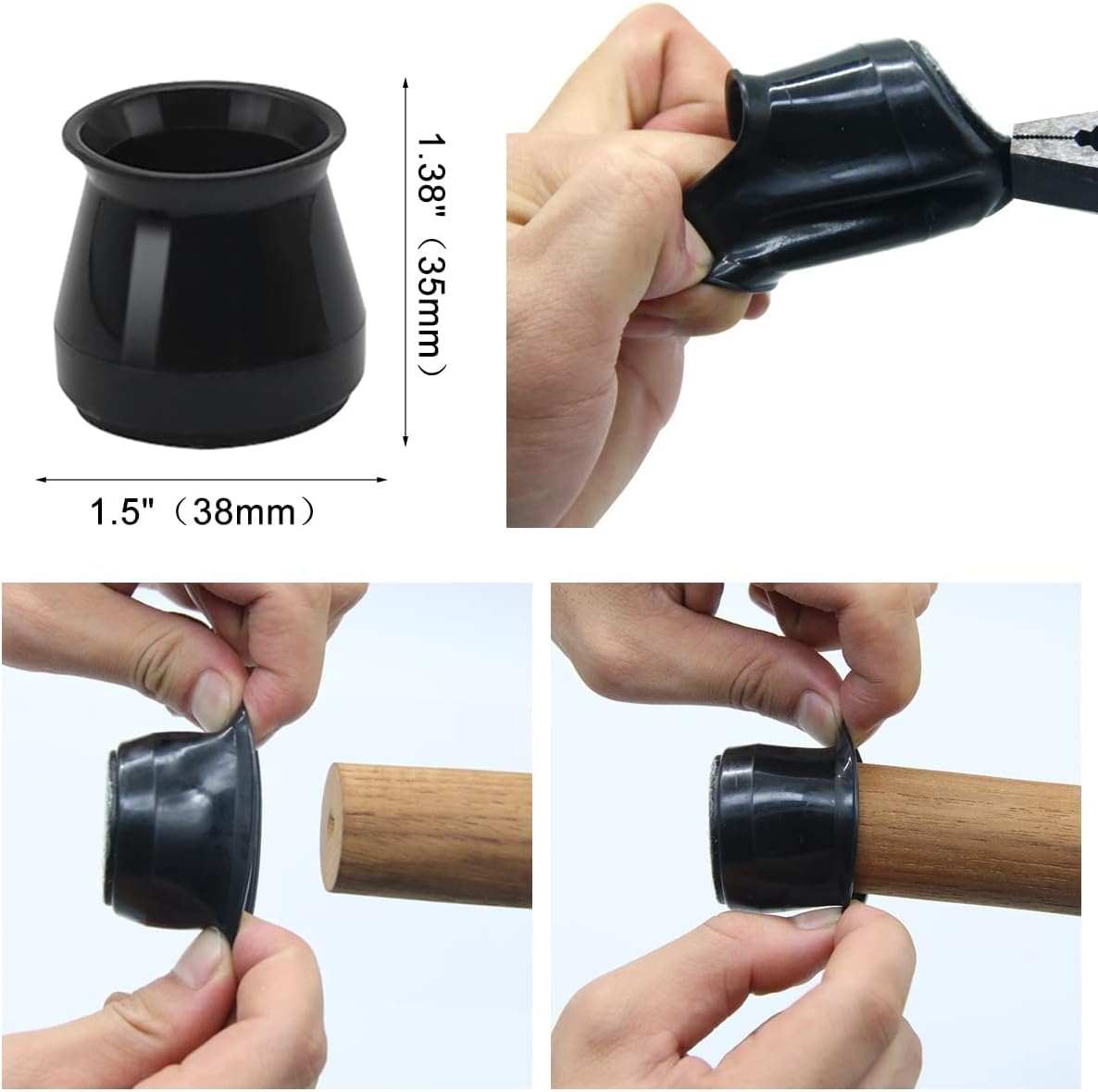 - Applicable size:Suitable for chair foot with perimeter of 4 9/16" to 6 4/16" (116-160mm). Round diameter 1 5/16" to 2" (33-50mm). Square side length 1 3/16”to 1 9/16" (29-40mm)