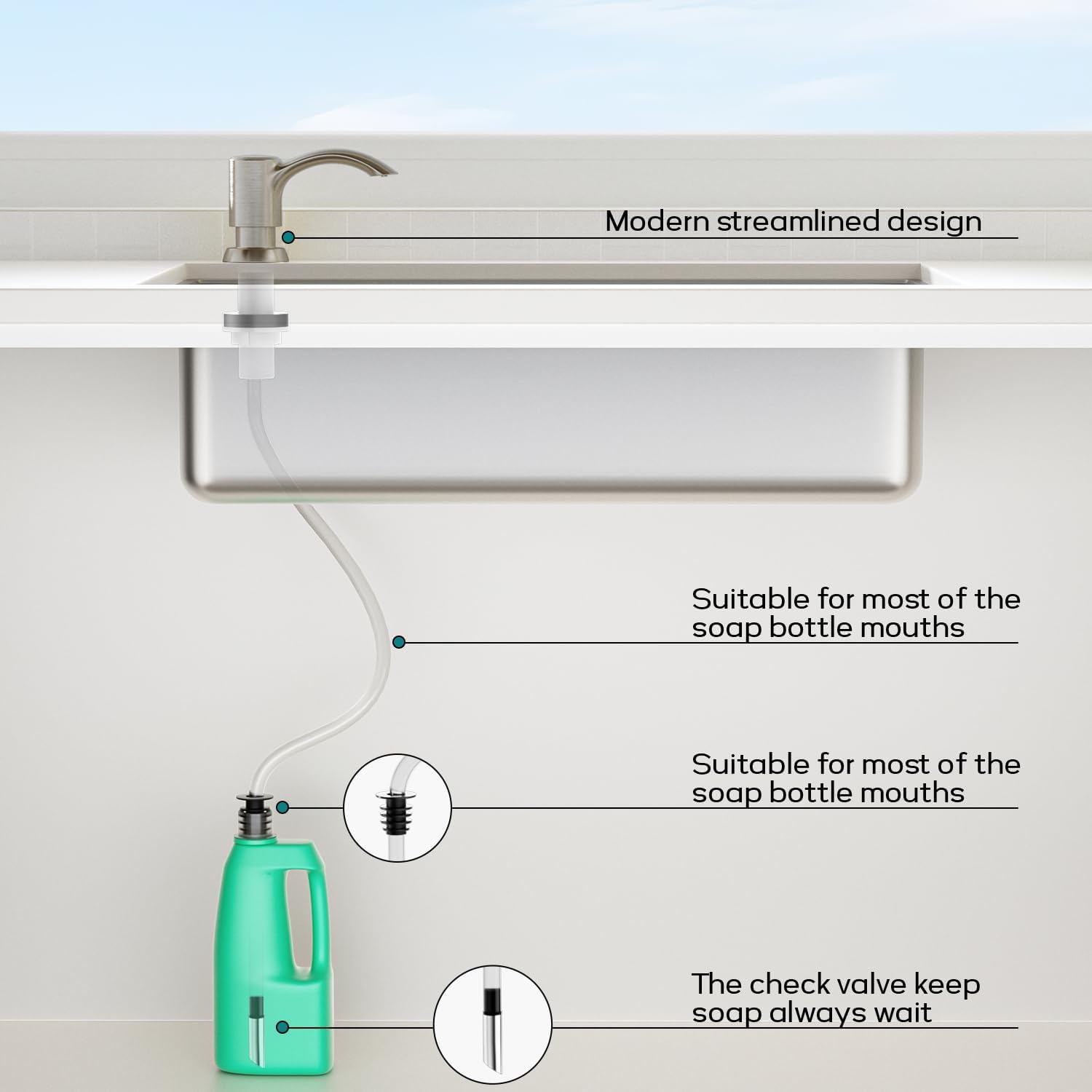 - 【Visual Coordination】- The dispenser's design seamlessly matches most brushed nickel kitchen faucets, enhancing the sink's aesthetic and contributing to a neater, cleaner, and more efficient kitchen.