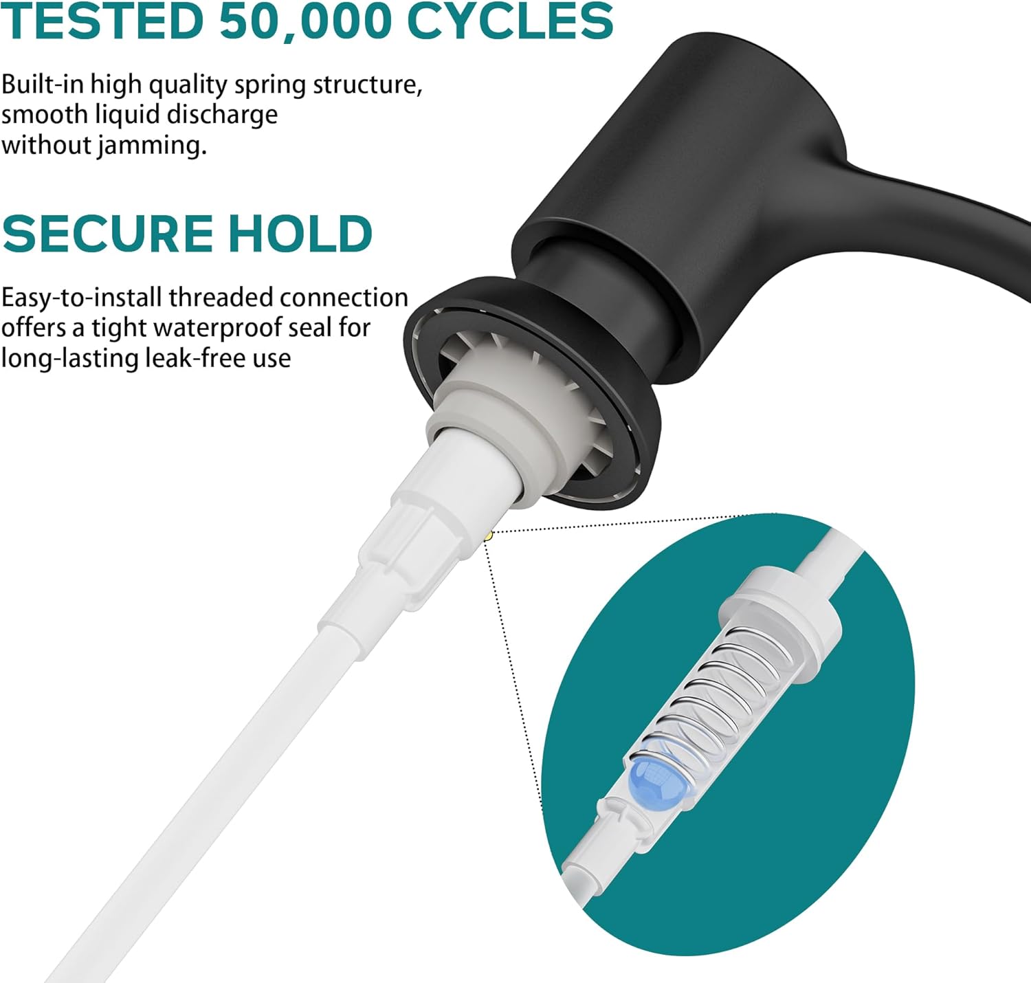 - 【Visual Coordination】- The dispenser's design seamlessly matches most black kitchen faucets, enhancing the sink's aesthetic and contributing to a neater, cleaner, and more efficient kitchen.