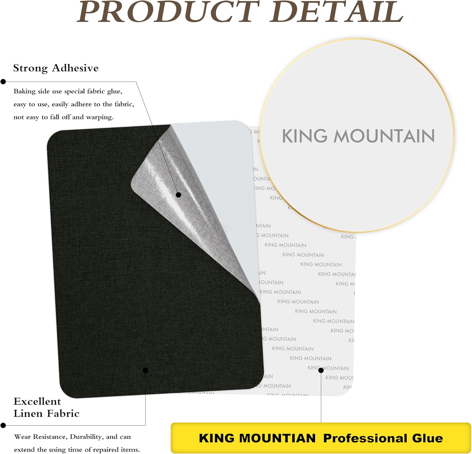 KING MOUNTAIN Fine Linen Repair Patches, Self-Adhesive Linen Fabric Patches, 8X11 inch Extra Size, Multi Color, Can be Used for Linen Sofa Repair and Linen Clothes Repair(Charcoal Black,8" x 11")