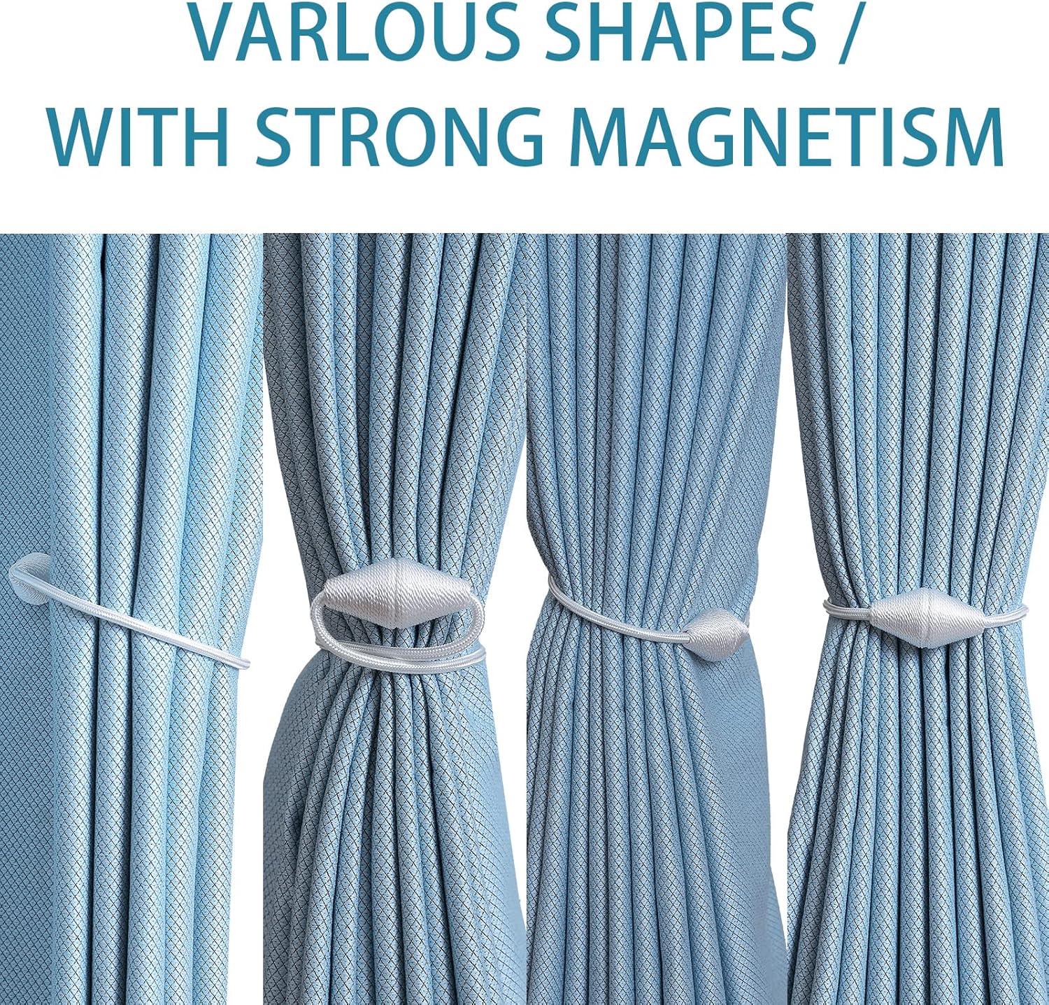 - WIDE APPLICATION: The length and binding method can be adjusted freely according to the thickness of the curtain. It is widely used in curtains in different places such as bedroom, living room, dining room, bathroom, kitchen, office, courtyard and so on. Different colors of magnetic drape tiebacks adorn your curtains, which can change different styles, giving the curtains a unique charm