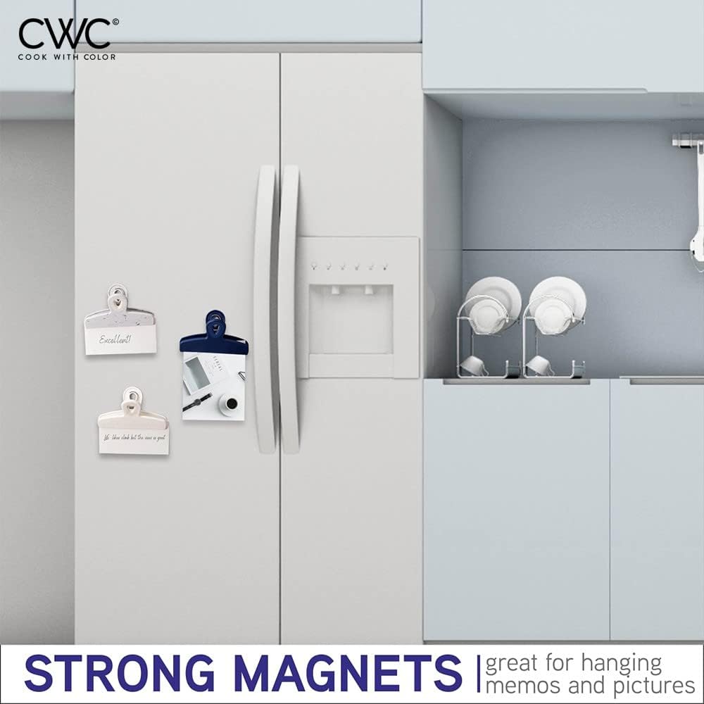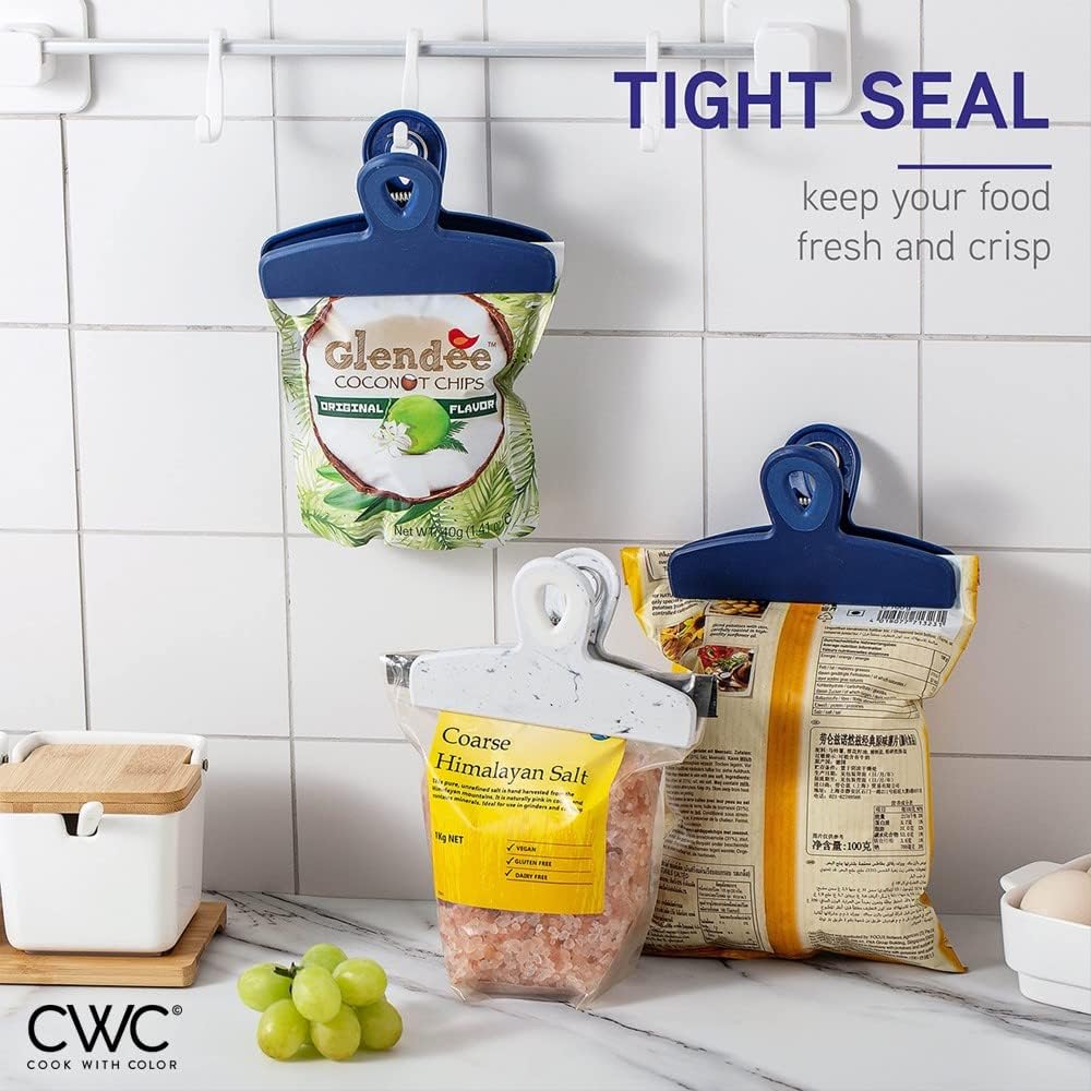 COOK WITH COLOR Bag Clips - Heavy Duty Chip Clip and Refrigerator Magnet Clips for Food Storage with Air Tight Seal Grip, Blue and White, Pack of 8 Large Clips