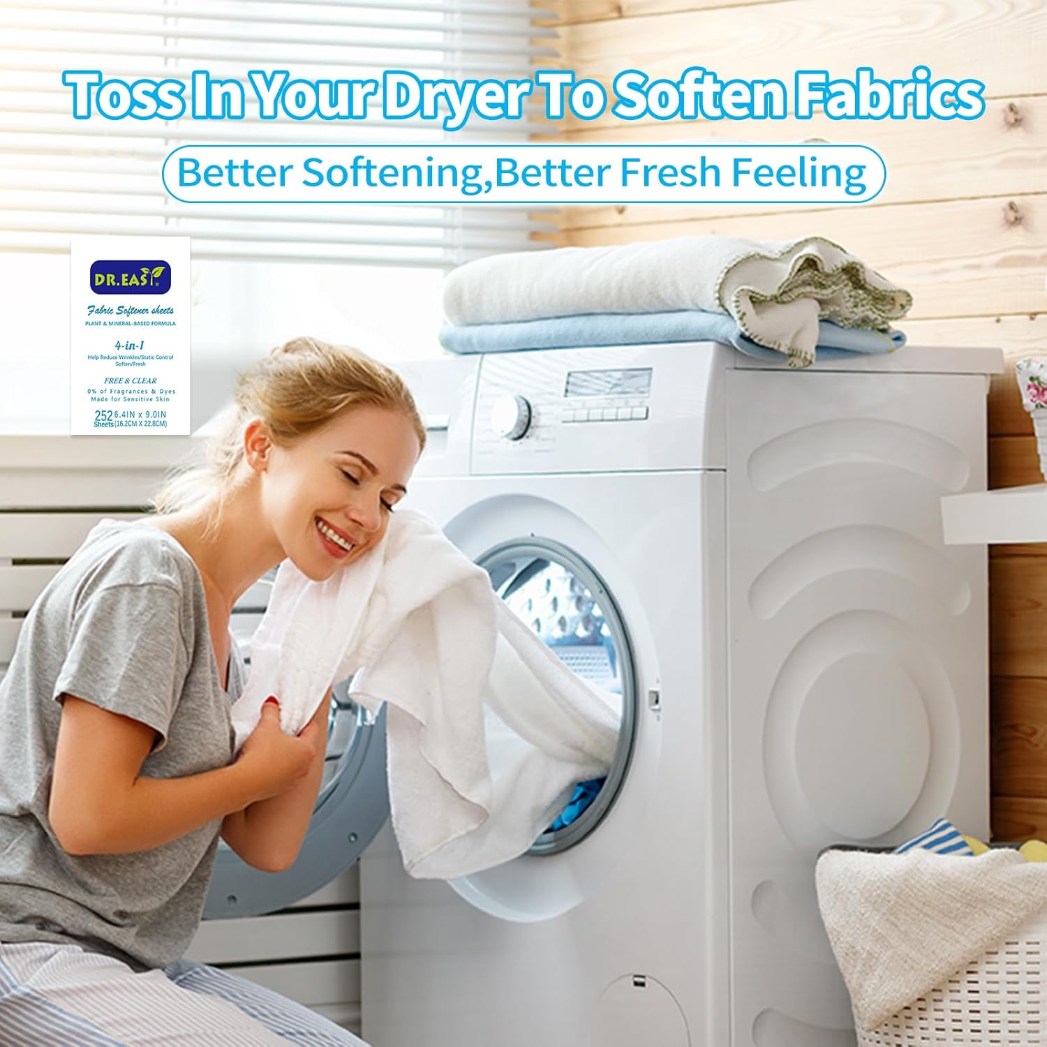 - Thinner nonwoven but better effects: Dr.Easy dryer sheets are carefully crafted Climate Pledge Friendly using thinner spunbond nonwoven,but better softening,better fresh feeling. Just toss in your dryer to soften fabrics, reduce wrinkles, reduce static cling and even help repel pet hair, while leaving your clothes feeling cozy and soft.