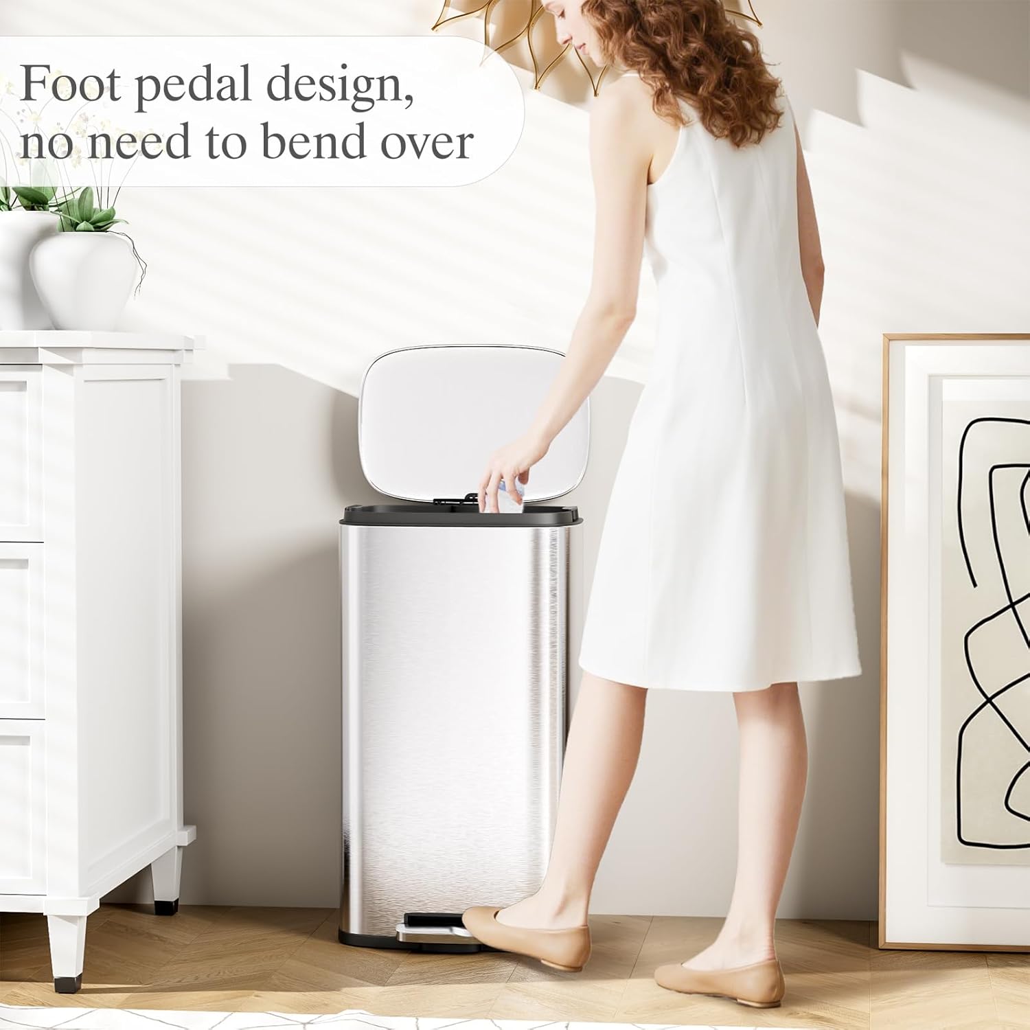- 【MUTE CLOSING&AIRTIGHT】Kitchen Dustbin adopt ABS hydraulic deceleration technology, the lid of the trash can will fall silently without annoying popping sound, suitable to be placed in the study and bedroom. Airtight lid will seal off the odor firmly, so you don’t have to worry about the unpleasant smell emitted by the kitchen garbage in summer.