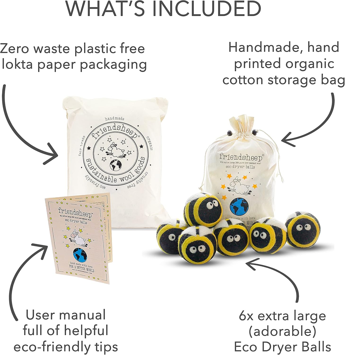 - DONE WITH BORING WHITE WOOL BALLS! For unique and fun laundry, play time with your kids (or pets!), to scent your house, decorate a baby room, or your Christmas tree. THIS CHRISTMAS GIVE THE STARS OF FRIENDSHEEP! Check out all Friendsheep Sustainable Wool Goods, hand made with love for a better world!