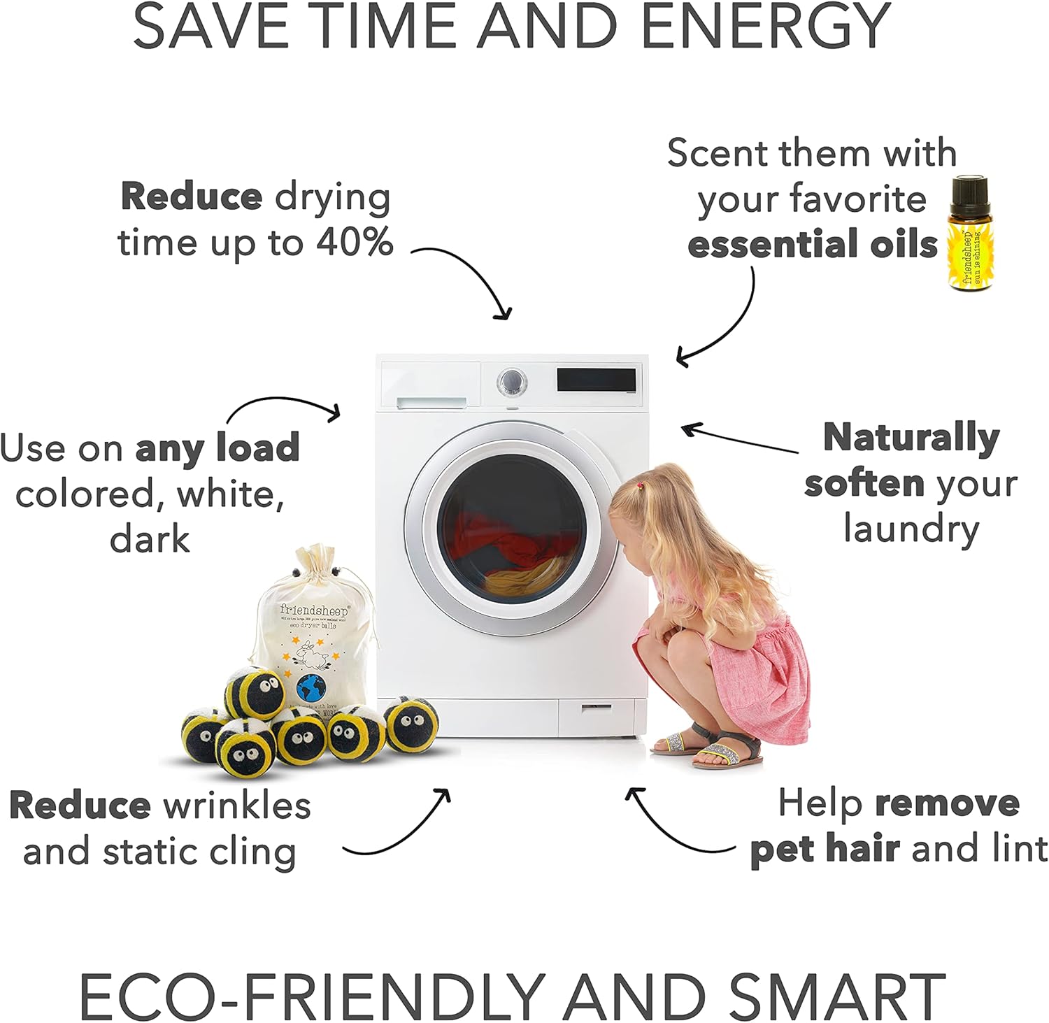 - ECO-FRIENDLY AND REUSABLE FOR 1000+ LOADS, replaces dryer sheets & liquid fabric softeners. Makes your laundry soft and fluffy, reduces wrinkles and static cling, and shortens drying time by up to 40% depending on load size. Your sheets and towels are fluffier, less balling and twisting. Makes you SAVE TIME, ENERGY, AND MONEY! All by keeping safe and healthy you, your family and the environment.