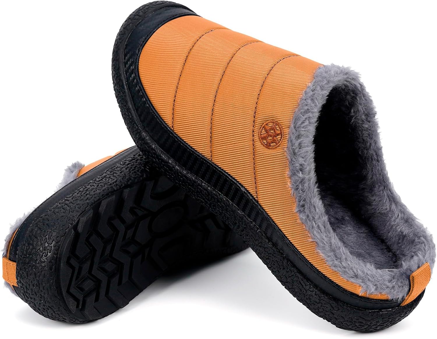 • ANTI-SLIP & DURABLE & LIGHTWEIGHT: Rubber outsole, flexible, good skidproof and wear-resistant, offers you an anti-slip protection of the sole increasing friction. Reduces the risk of slips and falls on hazardous surfaces, and the winter slippers can protect your feet from injures in snowy and rainy weather. he sole material is not easy to deform and environmental protection, without peculiar smell. It also does no harm to any floor surfaces including wood and tile.