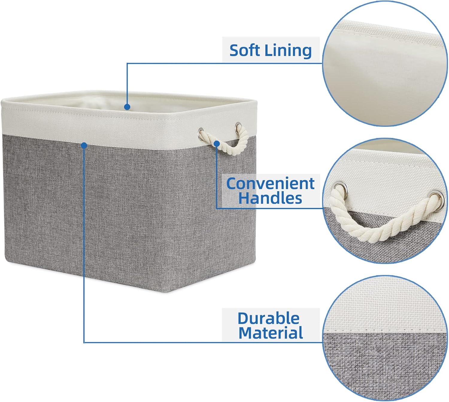 - EASY to CARRY: The storage basket comes with 2 sturdy rope handles for easy access and for portability. Soft handles that add a classic touch, and make these fabric storage baskets are sturdy and easy to grab and make it easy to carry or pull off and out of shelves