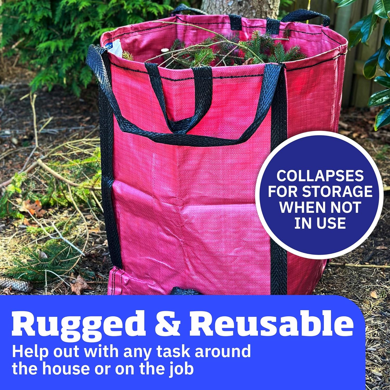 - MULTI-USE: Use both indoors and outdoors. Whether it is projects in your yard or garden, or storing that extra bedding or holiday decorations, these lawn bags heavy duty are up to the task. The versatility of the DuraSack makes it perfect for garden or yard waste, storm debris cleanup, demolition, home and garage storage, construction and contractor use, or even pop up trash cans for parties.