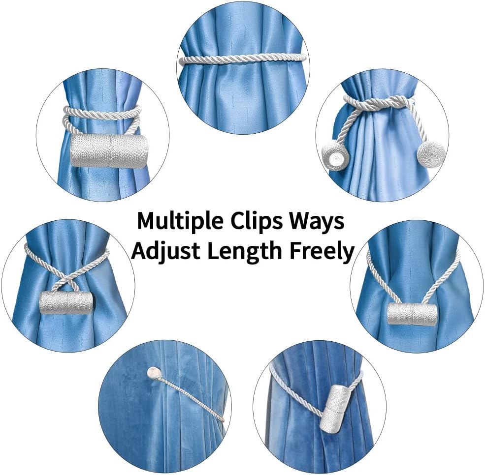 - NO DRILLING & INSTALLATION:The magnetic rope tie backs with modern upgraded stronge/durable magnets,hand-tiwsted woven texture apperance rope, heavy-duty polyester rope. No need any tools,no drilling your wall, so magnetic curtain tiebacks for drapes will not damage the wall easy to operate,hold your curtain in seconds. It is a perfect substitute for wall-mounted hooks and could be tied on anywhere, and you don’t need to worry about the extra curtain hooks hurting the child
