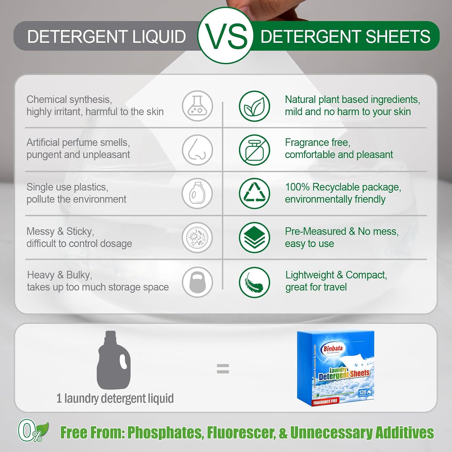 - 𝐙𝐞𝐫𝐨 𝐖𝐚𝐬𝐭𝐞 & 𝐍𝐨 𝐏𝐥𝐚𝐬𝐭𝐢𝐜: Compared to traditional liquid and powder detergent, Binbata eco laundry detergent sheets adopt plastic-free, zero waste recyclable package, reduces 95% fuel consumption and carbon emissions during the transportation, has and will always work hard to alleviate global warming.
