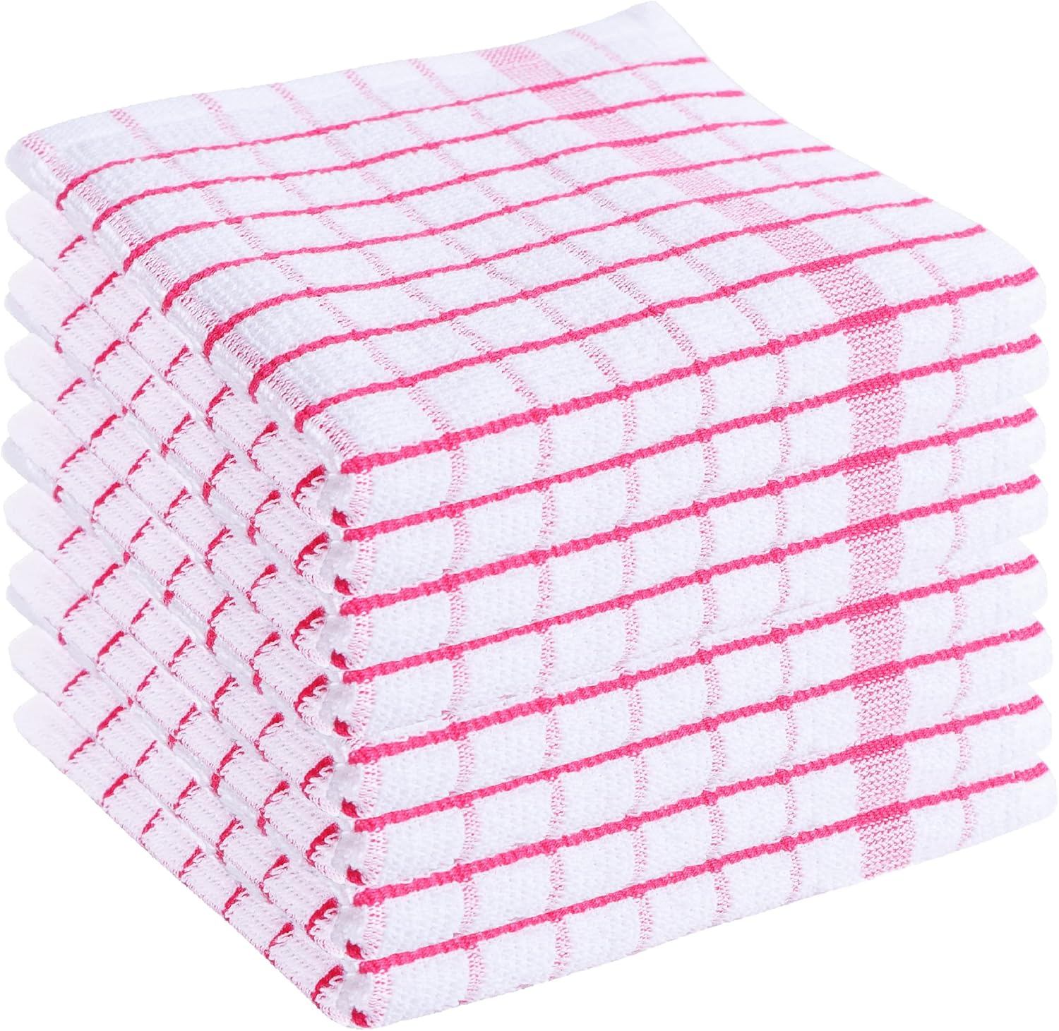 - SET OF 8 DISHCLOTHS: This set includes 8 premium-quality, 12" x 12" dish cloths, crafted from , high-density terry cotton. Ideal for everyday kitchen use, each cloth provides an excellent balance of softness and absorbency, ensuring a luxurious feel and optimal cleaning performance.