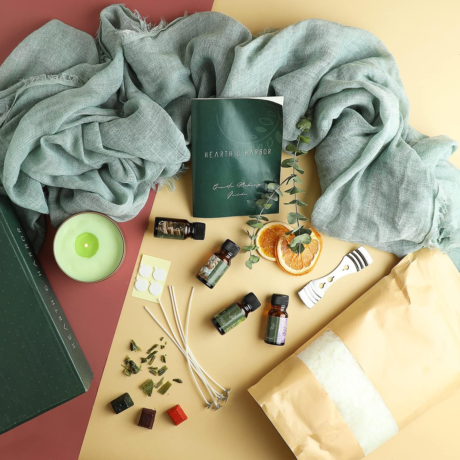 - All-In-One Starter Kit – Everything you need to dive into candle making! Our Hearth and Harbor soy candle wax for candle making includes 2 lb bag wax, 4 candle scents for candle making, 4 cotton candle wicks for candle making, 4 candle wick stickers, 1 wick holder. Perfect for beginners or seasoned DIYers.