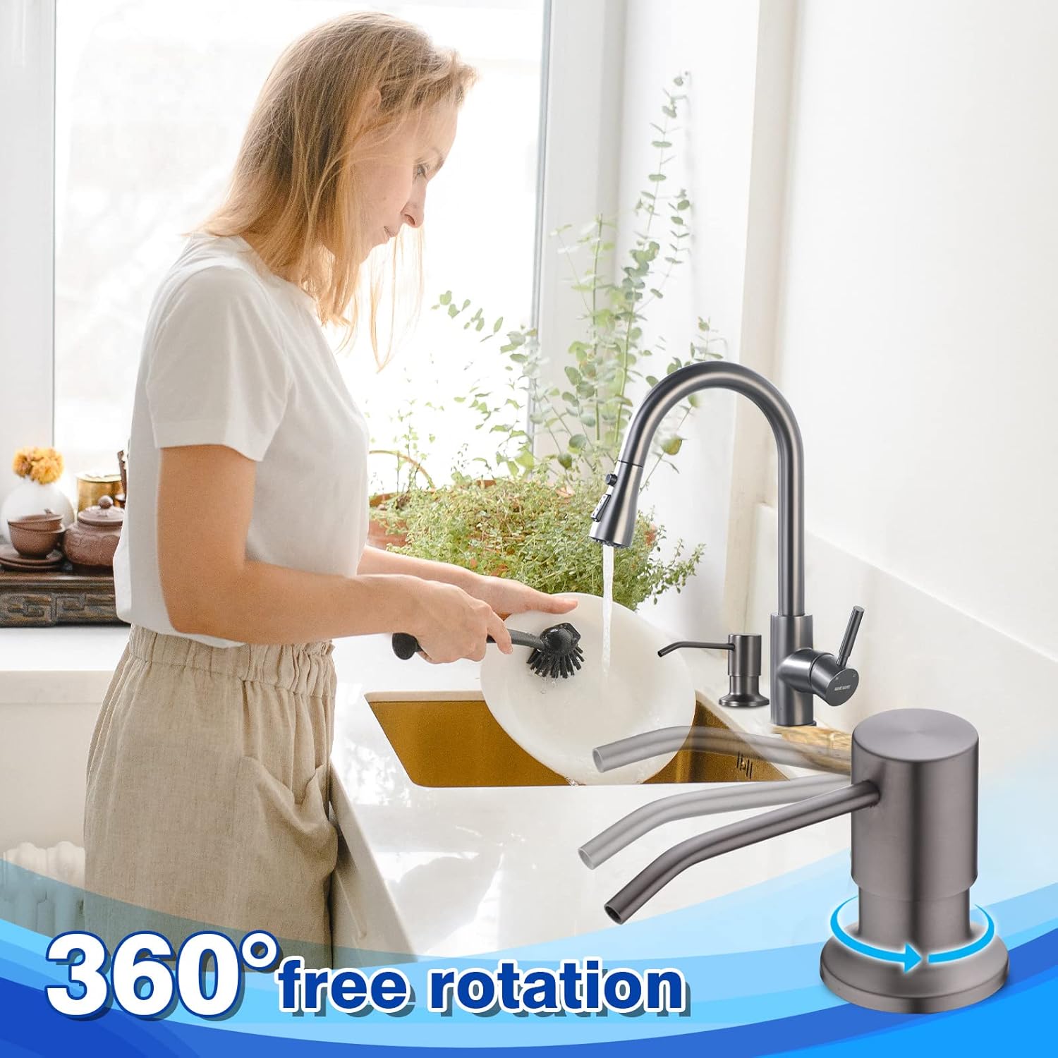 - Convenient and Practical: The matte gray kitchen counter soap dispenser is a perfect match for your sink or countertop, compared to the traditional liquid soap bottle, the built-in design makes your kitchen looks more tidy and elegant.