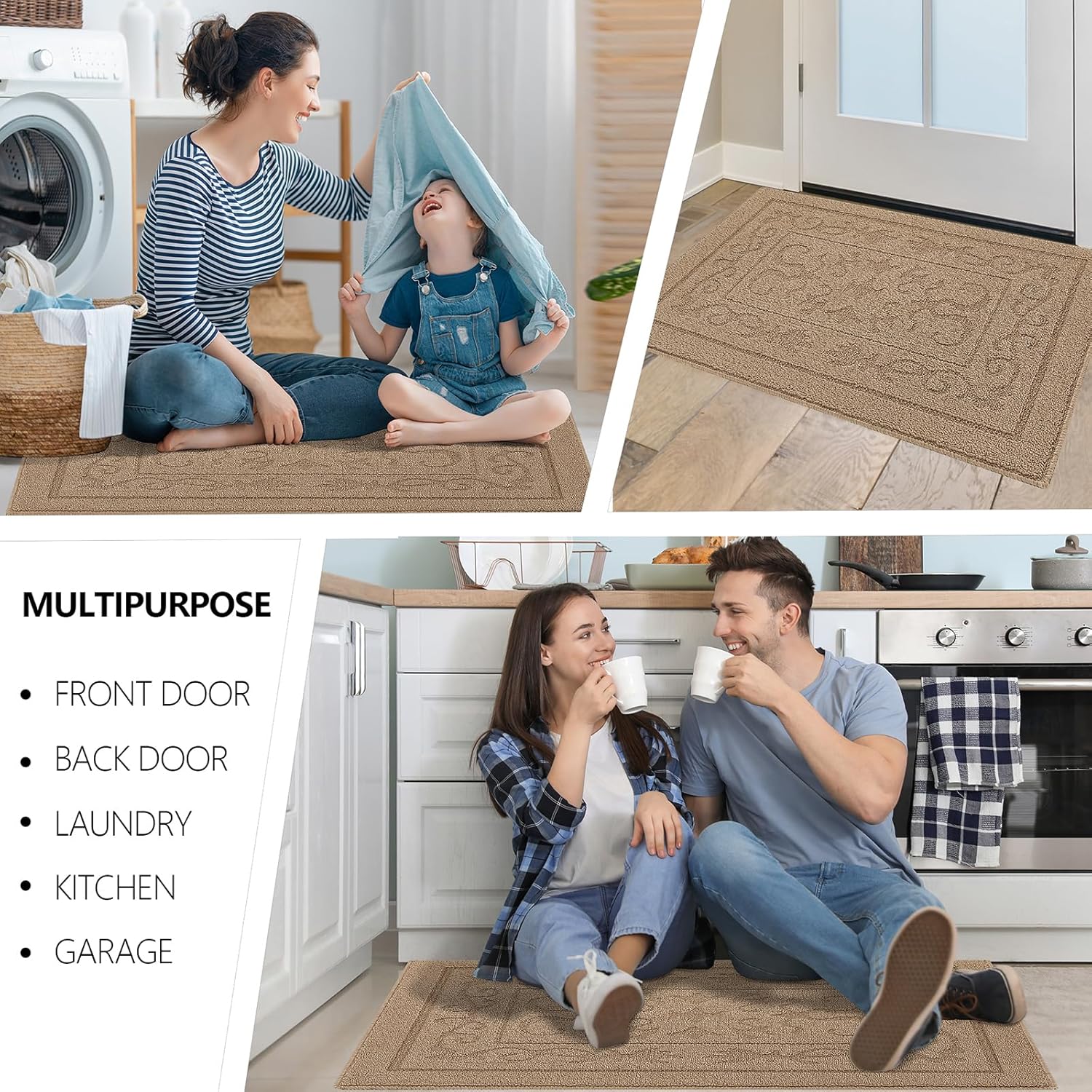 FONEYI Indoor Door Mat 36" x 59", Dirt Trapper Door Mats Non-Slip Entryway Rugs Washable, Absorbent Resist Dirt Welcome Mat, Low Profile Inside Floor Mats for Front Back Door and Entryway, Beige