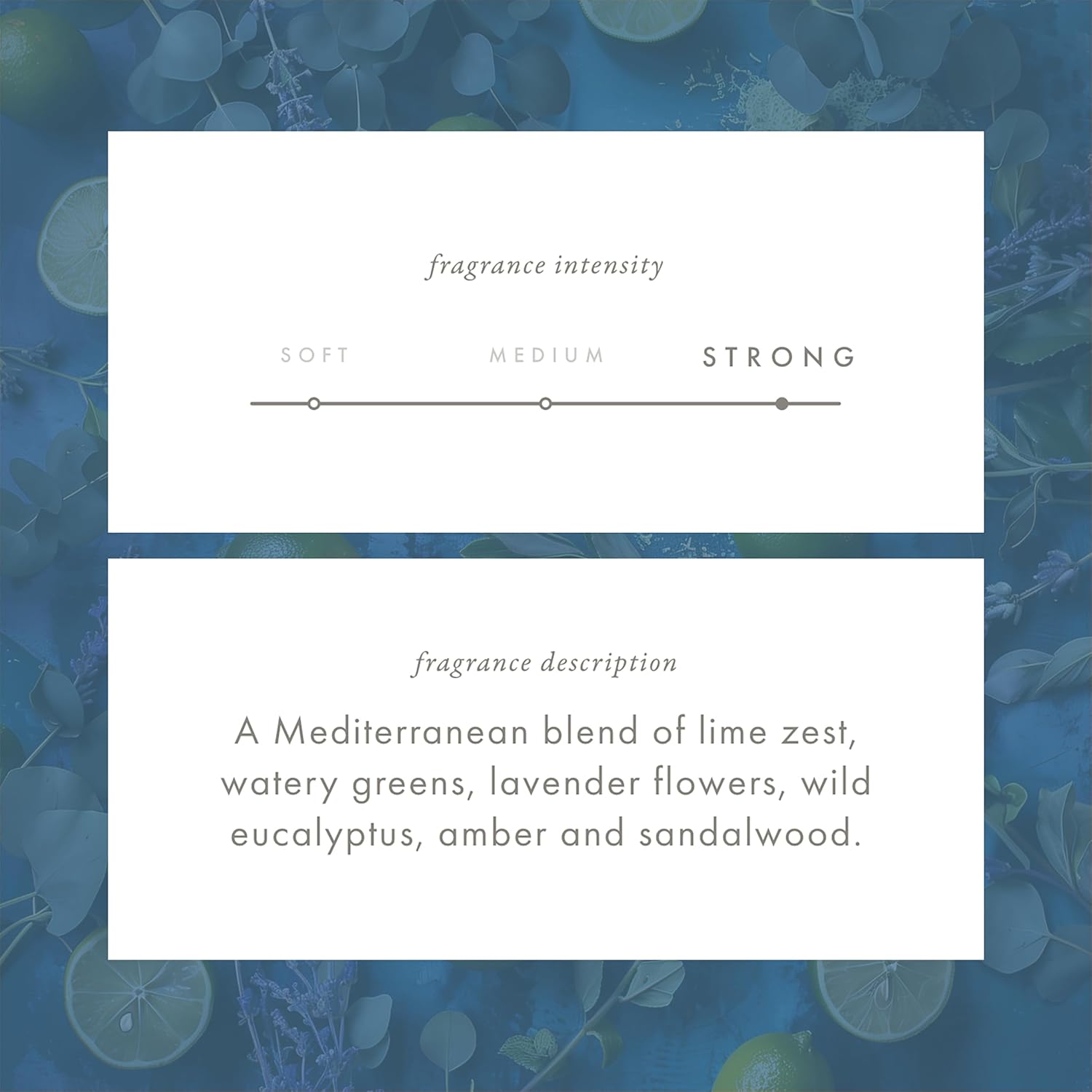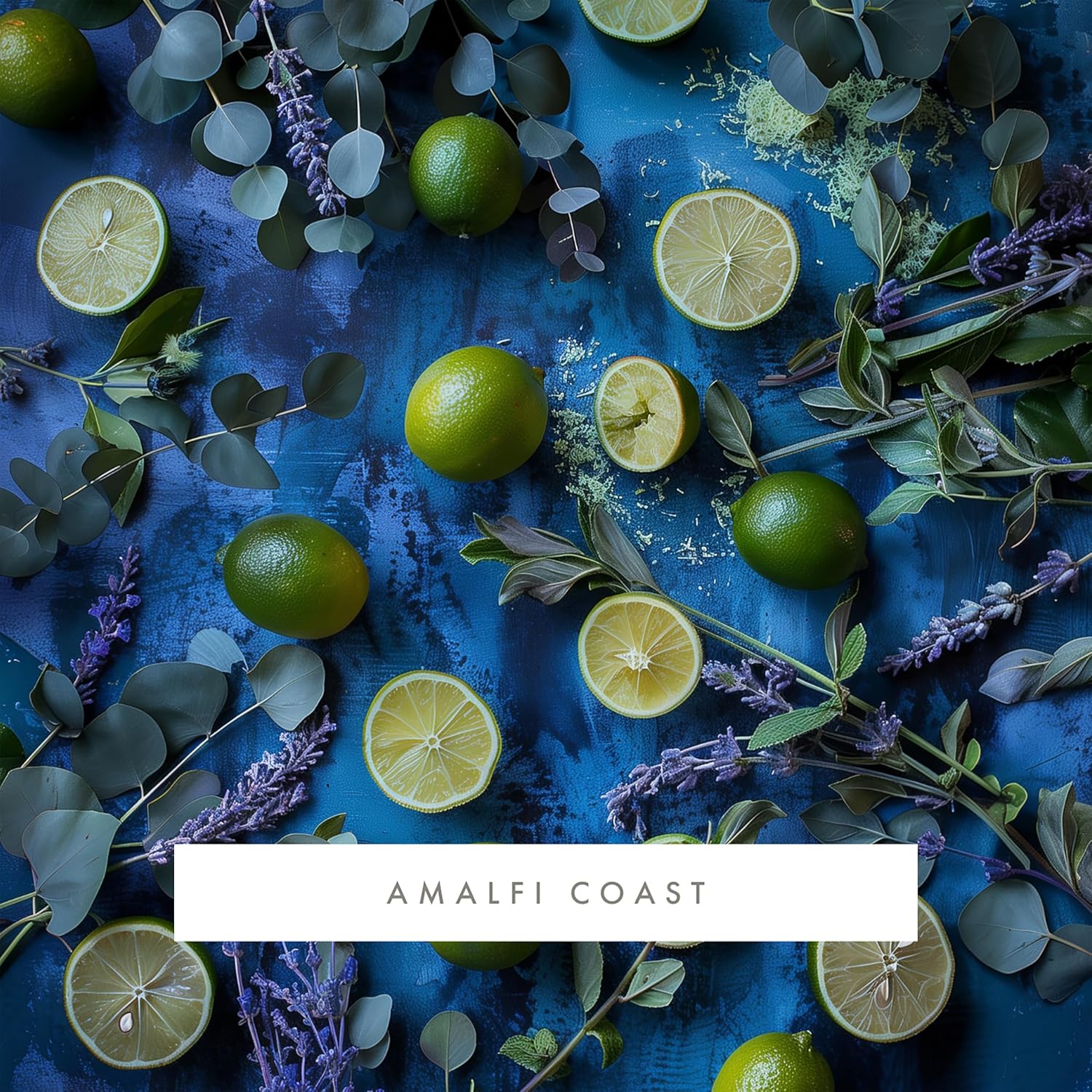 - CERULEAN SEAS HUG MEDITERRANEAN SHORES DOTTED WITH PASTEL HILLSIDE TOWNS. Here it’s always warm and sunny. Everything from the salty air to the sumptuous society is breezy and breathtaking. The scent of bright lime and watery greens mingle with sweet, herbal lavender, refreshing eucalyptus, and the woodsy perfume of sandalwood. Breathe in the allure of the Amalfi Coast—you may never want to leave.
