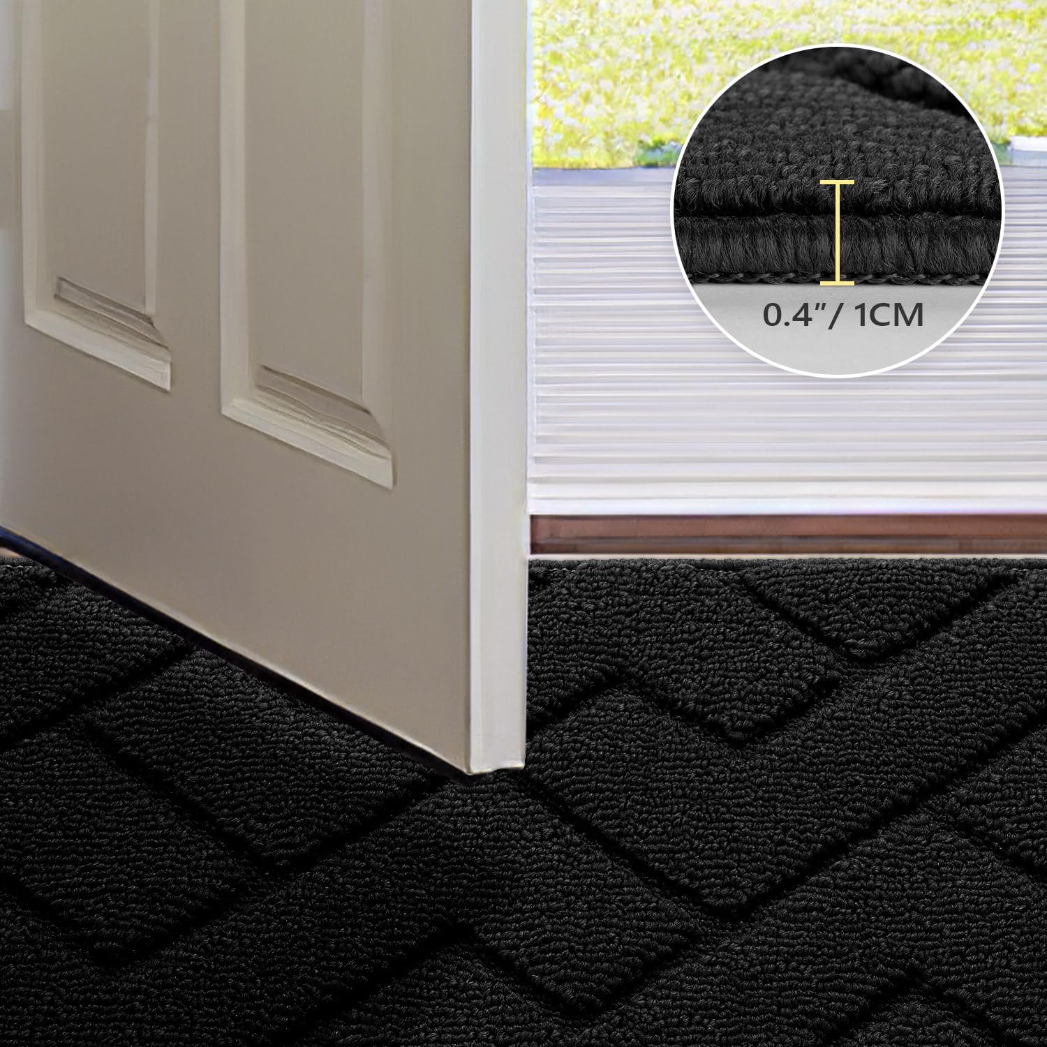 - Durable & NON-SLIP: Our Indoor Doormat is made of high-quality absorbent polypropylene fabric, uses double layer technology which absorb moisture and dirt from shoes quickly, makes your floors clean and dry. And the non-skid TPR rubber backing won't scuff floors, perfect for both indoor and outdoor use.