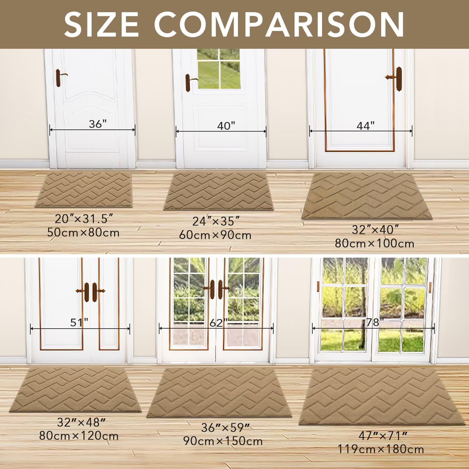 hicorfe Front Door Mat Outside Entrance,36"x59" Absorbent Muddy Dirt Resist Welcome Door Mats Outdoor Indoor,Stain and Fade Resistant,Non Slip Backing Entry Mat Doormat for Entryway(Brown)