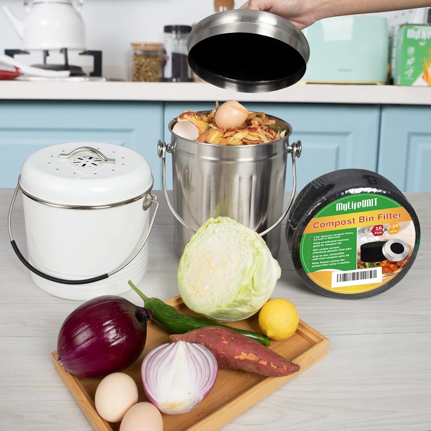 MyLifeUNIT 16 Pack Compost Bin Filter, Kitchen Compost Pail Charcoal Filter Replacements (7.25 inches)