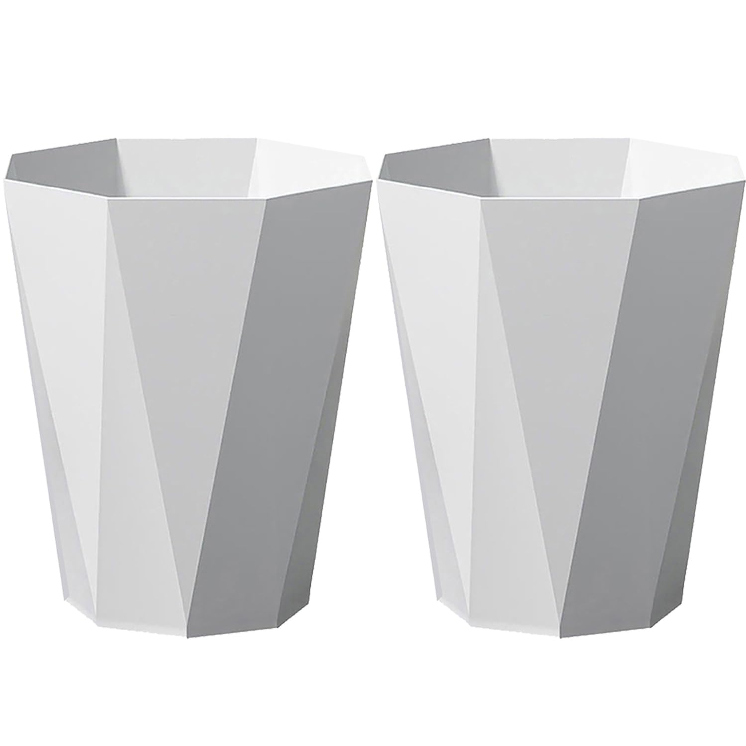 Trash Can Plastic Waste Basket 2.6 Gallon Garbage Can for Bathroom Office Bedroom Kitchen, 2 Pack White