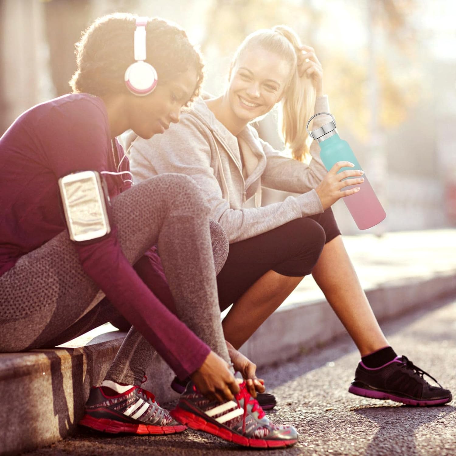 - PERFECT SIZE AND KEEP WARM FOR A LONG TIME: Our double wall insulation bottle protects temperature for up to 12 hours . The 20 oz stainless steel water bottle is perfect for everyday use and the cups fit on the bike cup holder and inside the backpack for your hiking, biking, beach, camping and fitness