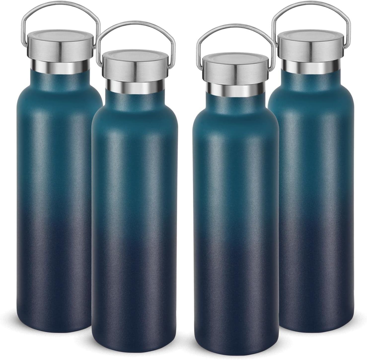 Neihepal 20 oz Insulated Water Bottles Bulk 4 Pack,Stainless Steel Double Wall Sport Bottle with Lid of Handle,Metal Reusable Thermoses Flask for School,Cyclists,Hikers,Gift (Dark Night,Set of 4)