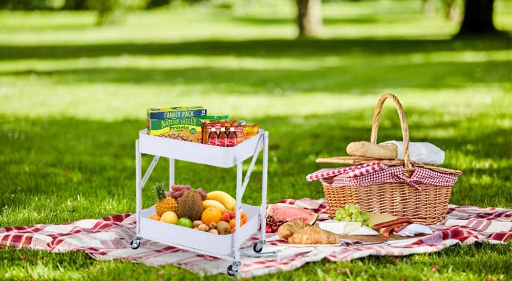 - 【Multifunctional Storage】-- This foldable 2 tier rolling storage cart has multiple functions which can be used anywhere you want it to be such as office, bathroom, kitchen, art studio, salon, garden, garages, laundry rooms hobby and craft areas and so on. It can be used as a tools cart, organization rack, sofa or bed side end table, nightstand, book cart, bedroom/living room storage cart and so on.