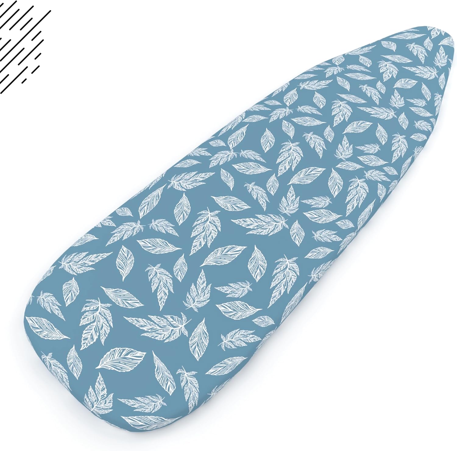 Encasa XO Ironing Board Cover and Pad 57"x22" - Thick 3mm Felt Padding, Drawstring Tightening & Lock, Easy Fit, Scorch & Stain Resistant, Fits X-Large Ironing Board - Big Leaves Blue