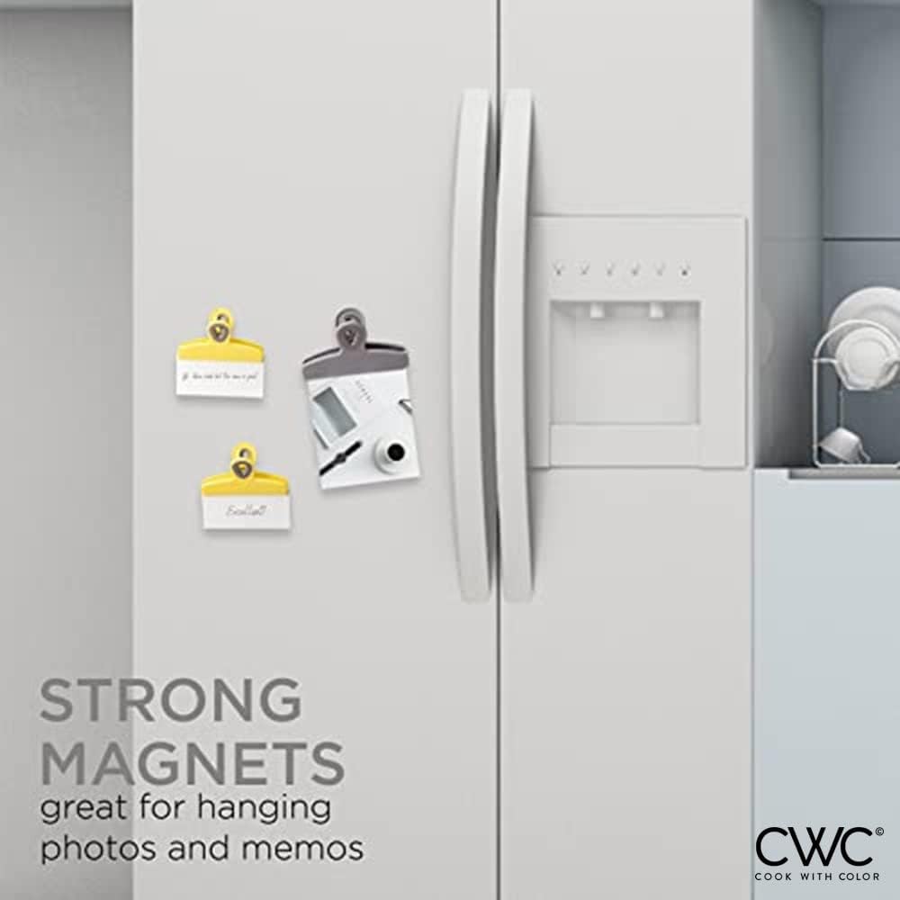 COOK WITH COLOR Bag Clips - Heavy Duty Chip Clip and Refrigerator Magnet Clips for Food Storage with Air Tight Seal Grip, Yellow and Grey, Pack of 4 Large Clips