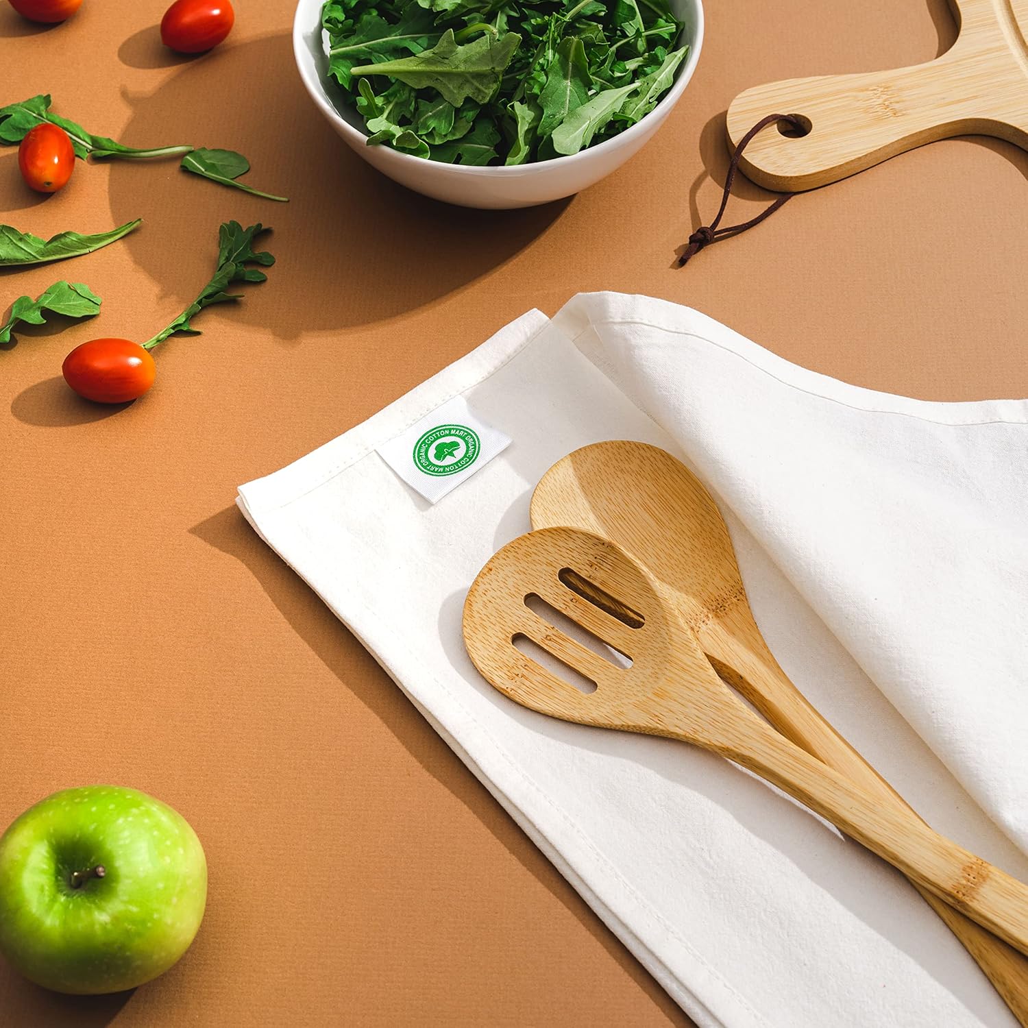 - Unbleached Cotton White Tea Towels - These are natural unbleached flour sack towels and are a perfect addition to your home. These do not contain any harmful chemicals or dyes and are made of 100% unbleached organic cotton giving it the creamish (ivory) look. Once the tea towel for kitchen is dirty, simply wash and it's ready for reuse. These machine-washable and premium quality cotton towels are a great alternative to wasteful paper towels and other disposable products.